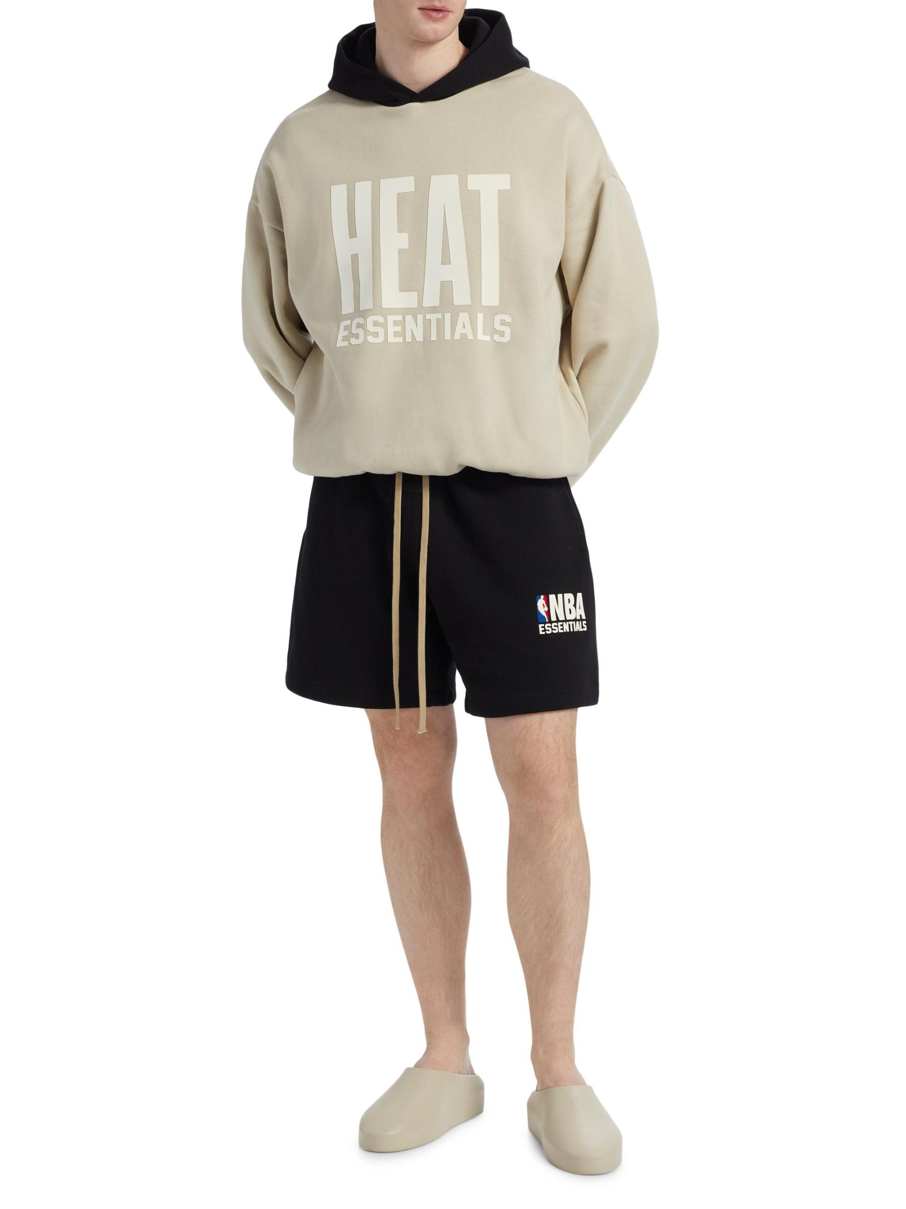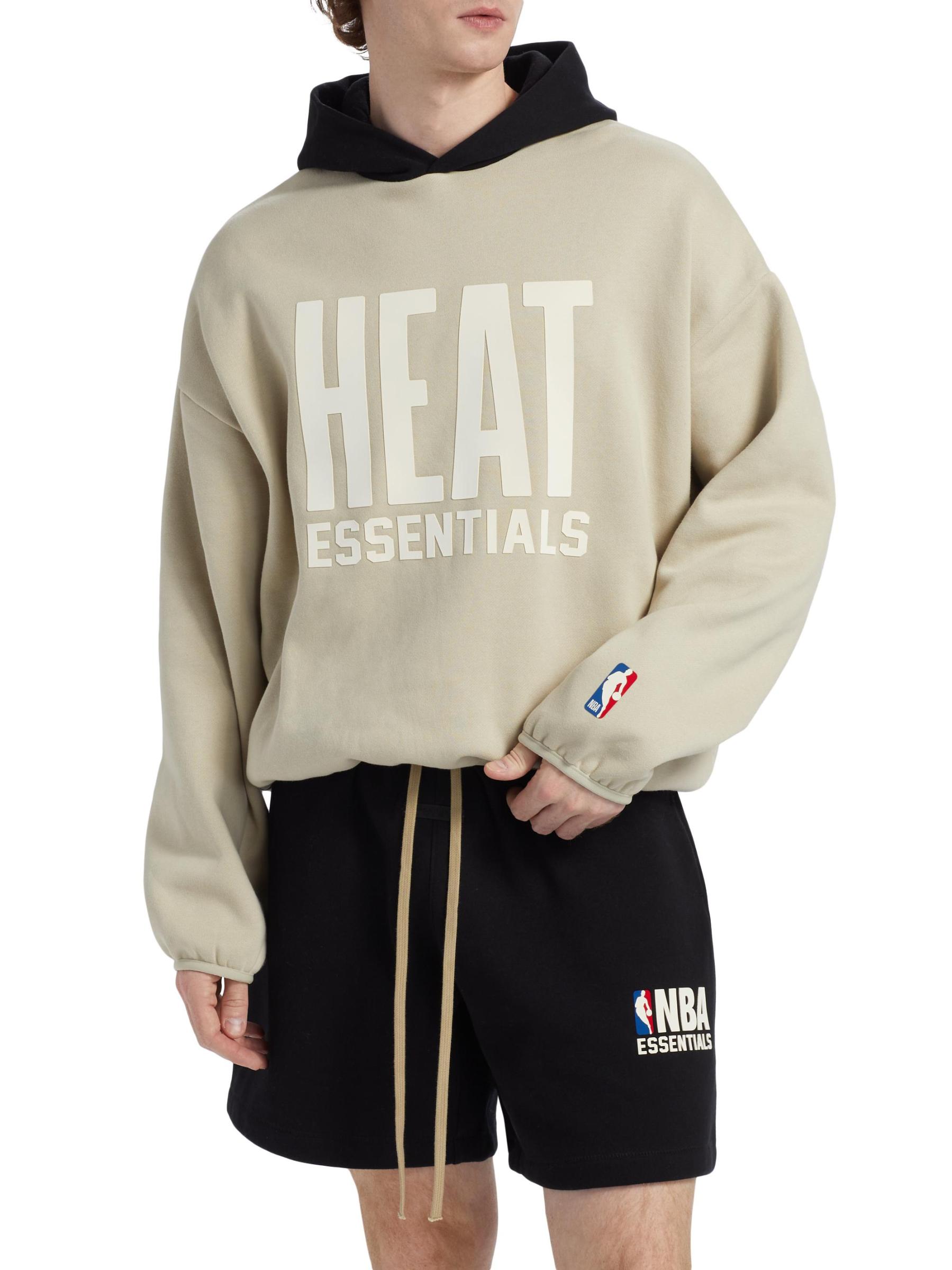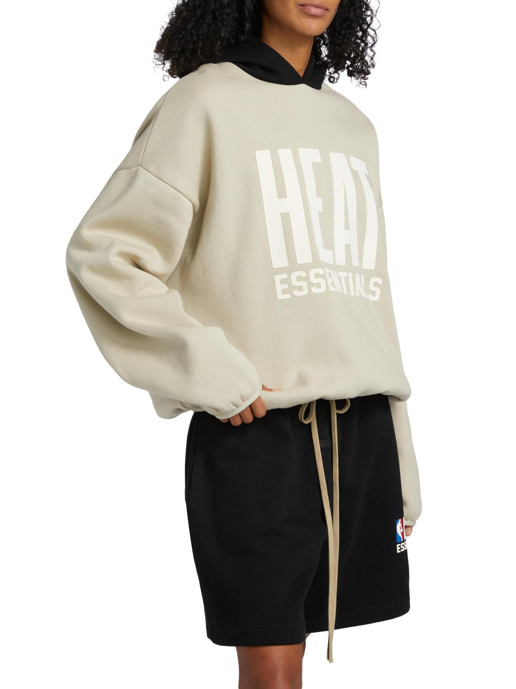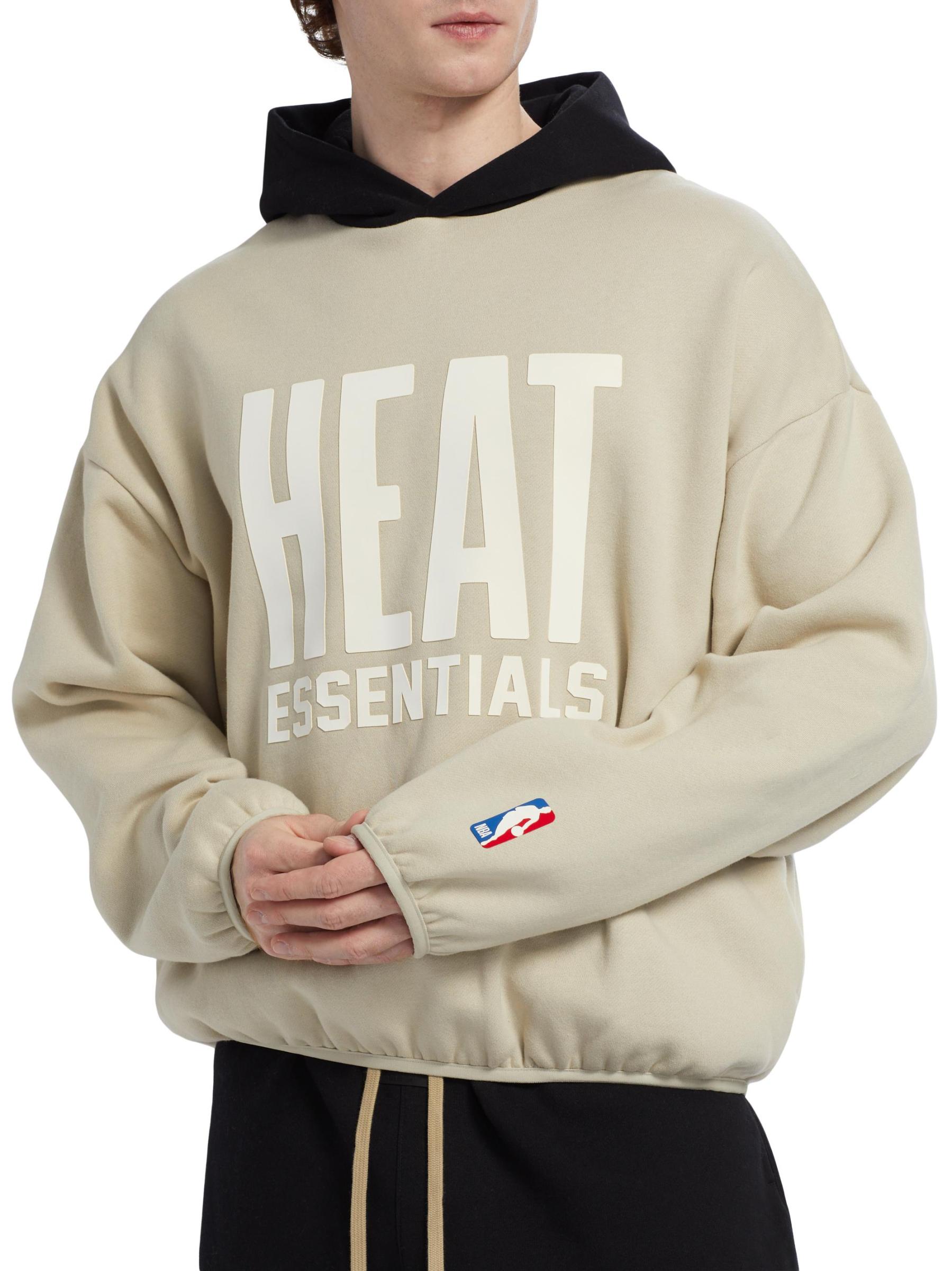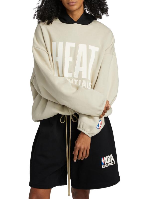 تتميّز سترة هيت هودي من Fear of God المصنوعة من مزيج القطن والصوف بشعار «HEAT ESSENTIALS» المطاطي الناعم على الصدر وشعار NBA® الأيقوني على الكفة اليسرى. تضفي الزخرفة المطاطية مزيدًا من الراحة على هذا النمط.