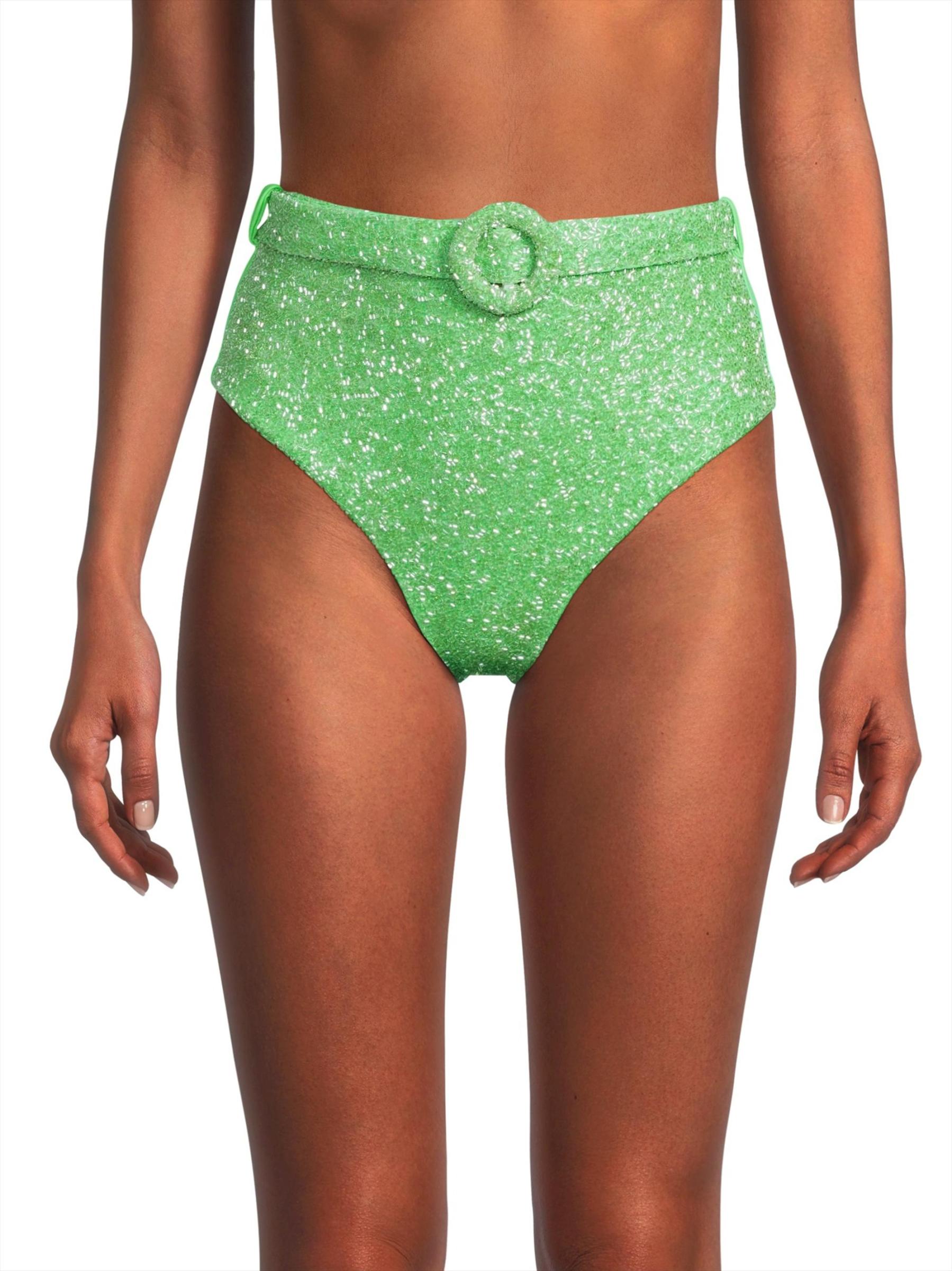 تم تصميم الجزء السفلي من بيكيني Oceanus Heidi بتصميم عالي الخصر ويتميز بخرز متناسق يدويًا وحزام أنيق.