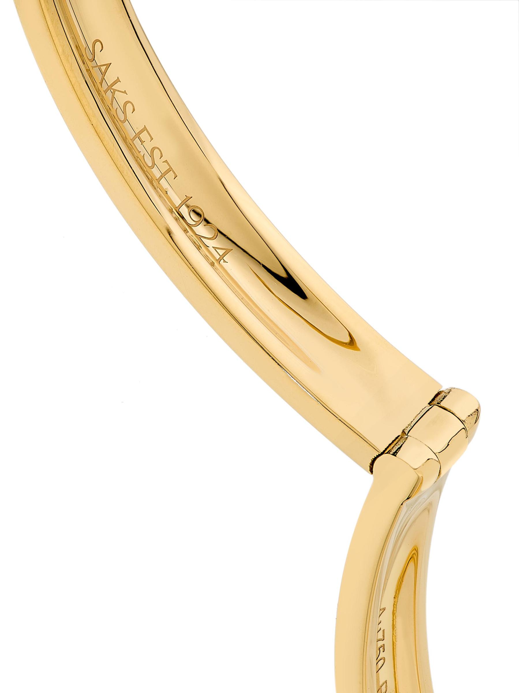 تعكس مجموعة Helix من SAKS EST. 1924 الفن النحتي لواجهة مبنى الجادة الخامسة الأيقونية في ساكس؛ حيث صُنعت أقطارها الرخامية وأشكالها الحلزونية من معادن ثمينة، مع تصميمات مختارة مضاءة بأحجار الماس المرصّعة يدويًا والتي ترسم كل منحنى. نشيد بالحركة الدائمة لمدينة نيويورك، كل قطعة مصممة لتتحرك مع الجسم. تضيف أحجار الماس المرصوفة لمسة من اللمعان إلى هذا السوار المفصلي المصنوع من الذهب الأصفر عيار 18 قيراطًاالماس، 0.45 طن مكعب درجة لون الماس: F-G درجة وضوح الماس: VS ذهب أصفر عيار 18 قيراط مشبك دفع صُنع في إيطاليا