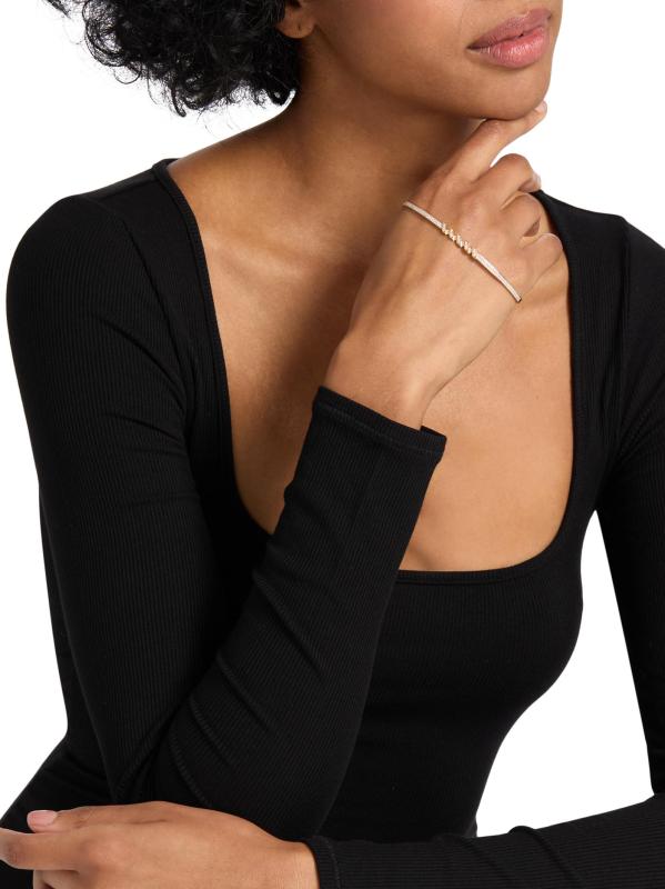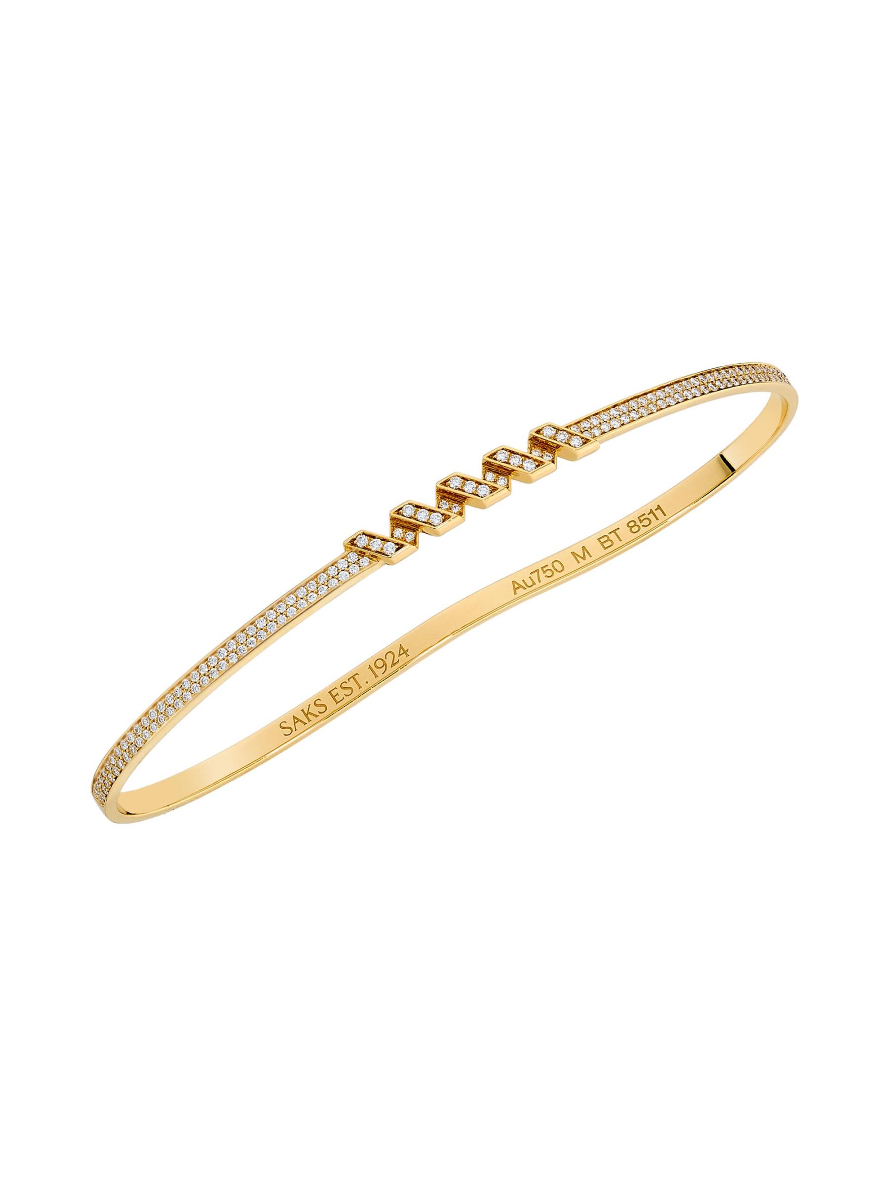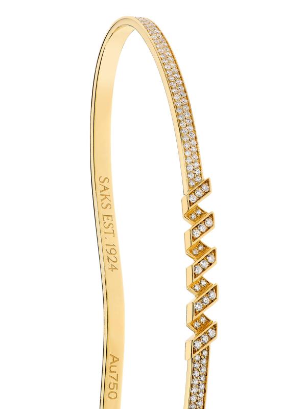 تعكس مجموعة Helix من SAKS EST. 1924 الفن النحتي لواجهة مبنى الجادة الخامسة الأيقونية في ساكس؛ حيث صُنعت أقطارها الرخامية وأشكالها الحلزونية من معادن ثمينة، مع تصميمات مختارة مضاءة بأحجار الماس المرصّعة يدويًا والتي ترسم كل منحنى. نشيد بالحركة الدائمة لمدينة نيويورك، كل قطعة مصممة لتتحرك مع الجسم. تضفي أحجار الماس المرصوفة بريقًا متألقًا على سوار اليد هذا المصنوع من الذهب المصقول عيار 18 قيراطًا.