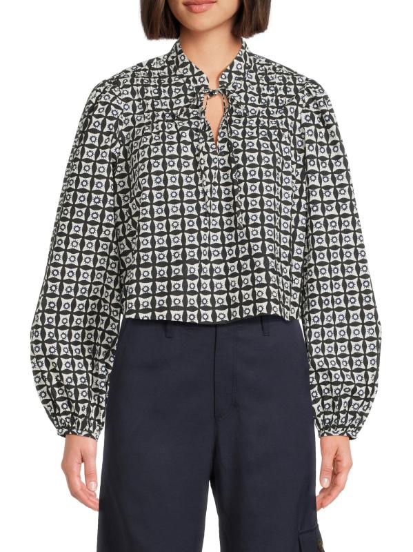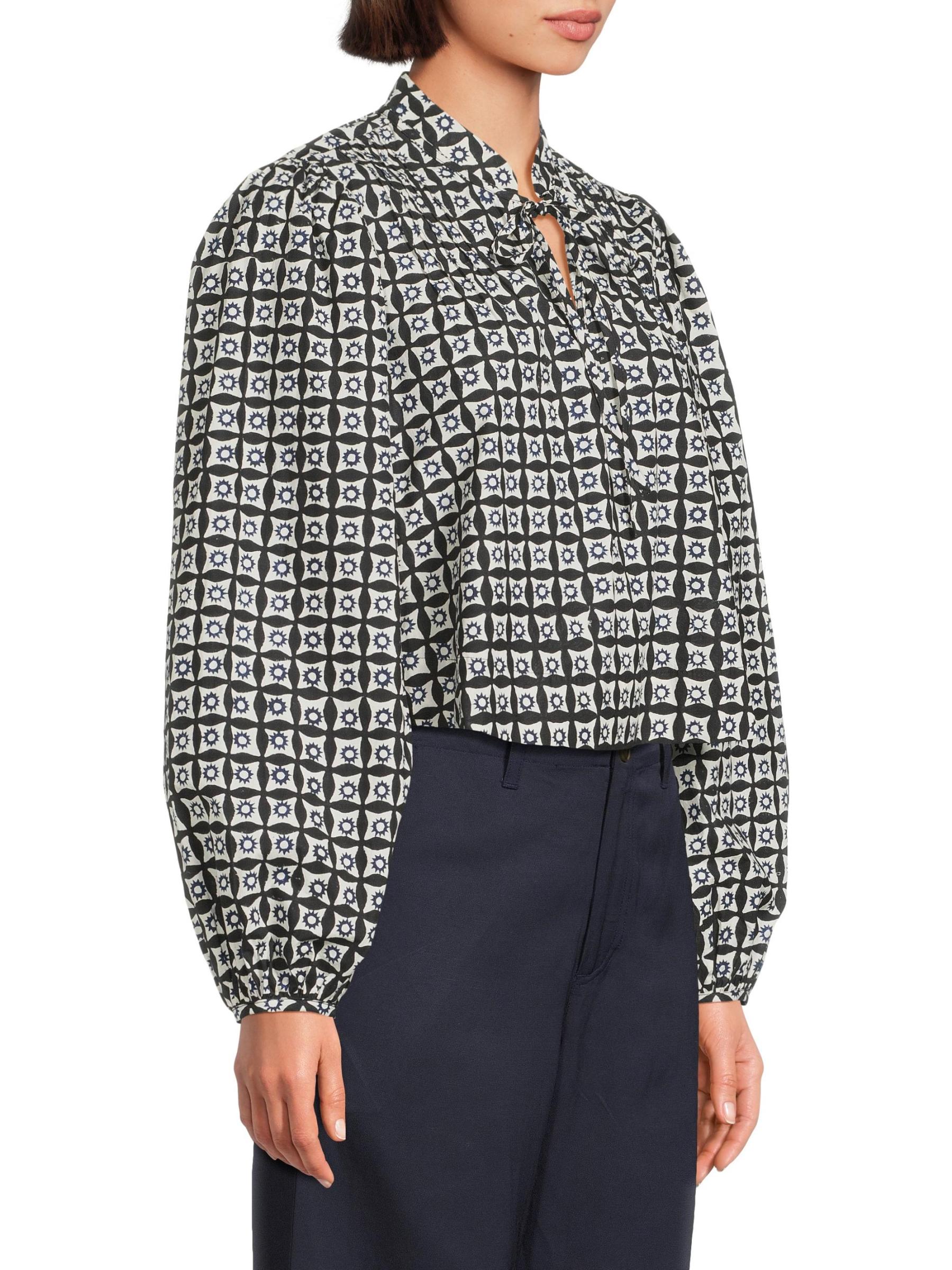 من مجموعة هالو صن شاين. تتميّز بلوزة Salm من Ciao Lucia بنقشة يدوية بلونين، وهي تتميّز بأكمام منفوخة ضخمة ورقبة منقسمة.