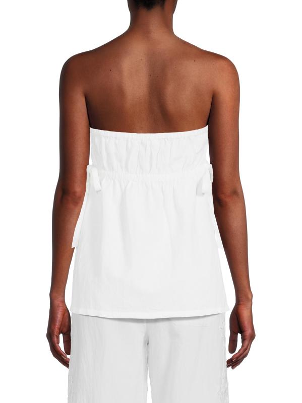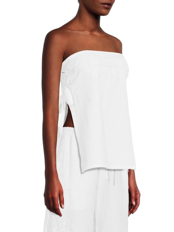 من مجموعة هالو صن شاين. بلوزة سيباستيان بدون حمالات من Ciao Lucia مصنوعة من القطن ومزينة بزهور مطرزة يدويًا وشقوق جانبية.