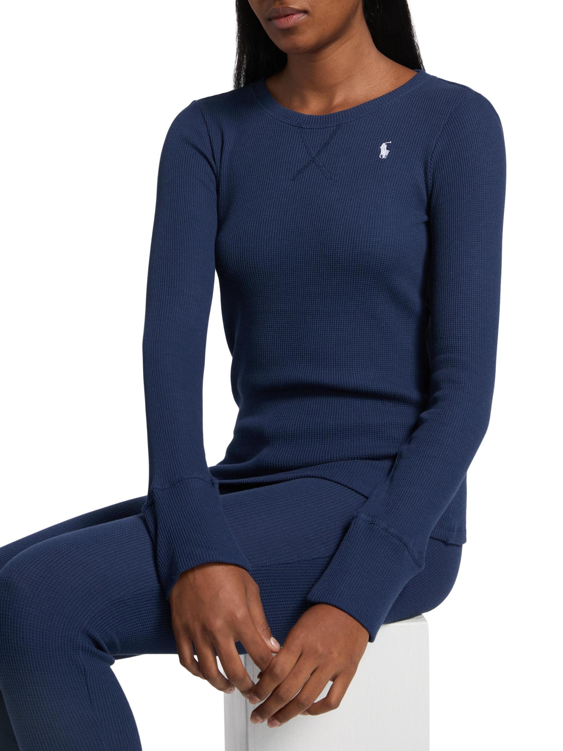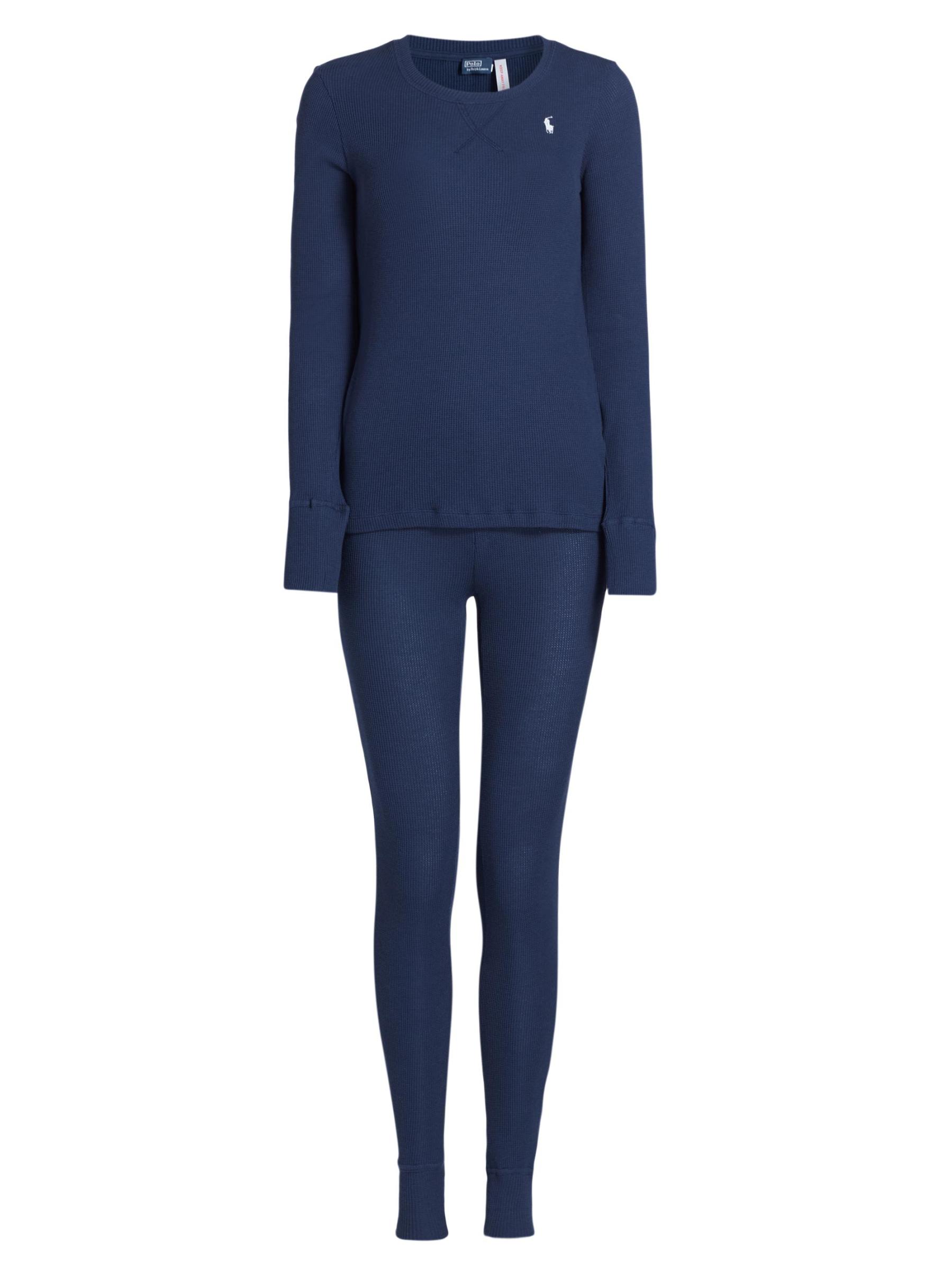 تشتمل مجموعة بولو رالف لورين هذه على بلوزة بأكمام طويلة على طراز Henley من مزيج القطن وبنطلون رياضي مع حزام خصر مطاطي يحمل شعار العلامة التجارية. 57% قطن/ 38% مودايل/ 5% سباندكس. يُغسل في الغسالة. مُستورَد.