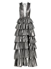 يتميز فستان Henriette من Aknvas بتصميم متدرج وفتحة رقبة عميقة على شكل حرف V وظهر على شكل V.