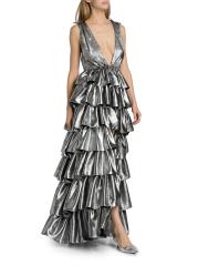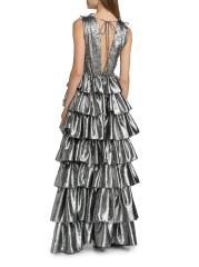 فستان هنرييت ميتاليك مكشكش بدون أكمام