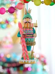 تم رسم زخرفة Here We Come a Waffling Bronson هذه من Glitterville يدويًا وتفصيلها ببريق ذهبي. تضفي أشجار عيد الميلاد المصنوعة من السيزال الصغيرة بهجة مرحة على هذه القطعة.