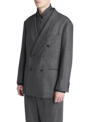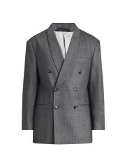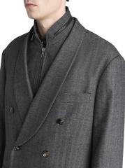 ثنيات على شكل شال أكمام طويلة وأساور بأزرار مكدسة جيب على الصدر جيب داخلي للصدر جيوب جانبية إغلاق بأزرار أمامية مزدوجة الصدر