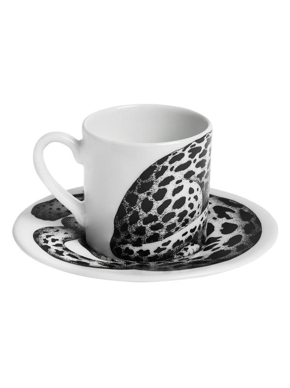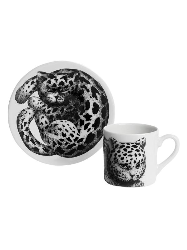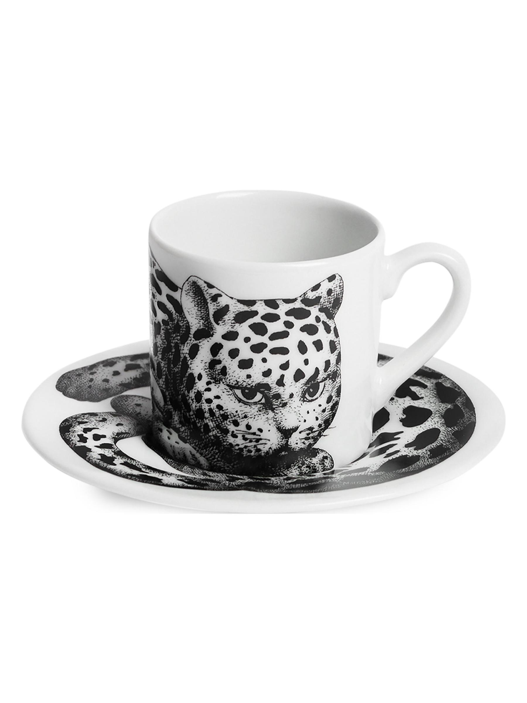 كوب وصحن قهوة عالي الدقة بنقشة جلد الفهد