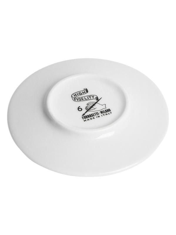 تعد مجموعة High Fidelity من Fornasetti جزءًا من مجموعة تصميمات من الخمسينيات، تعرض القطط، وهي واحدة من الحيوانات المفضلة لدى المؤسس بييرو فورناسيتي. مجموعة أكواب وصحون القهوة هذه المصنوعة في إيطاليا مصنوعة يدويًا من البورسلين.يتضمن كوب قهوة وصحن بورسلين غسيل يدوي صُنع في إيطاليا