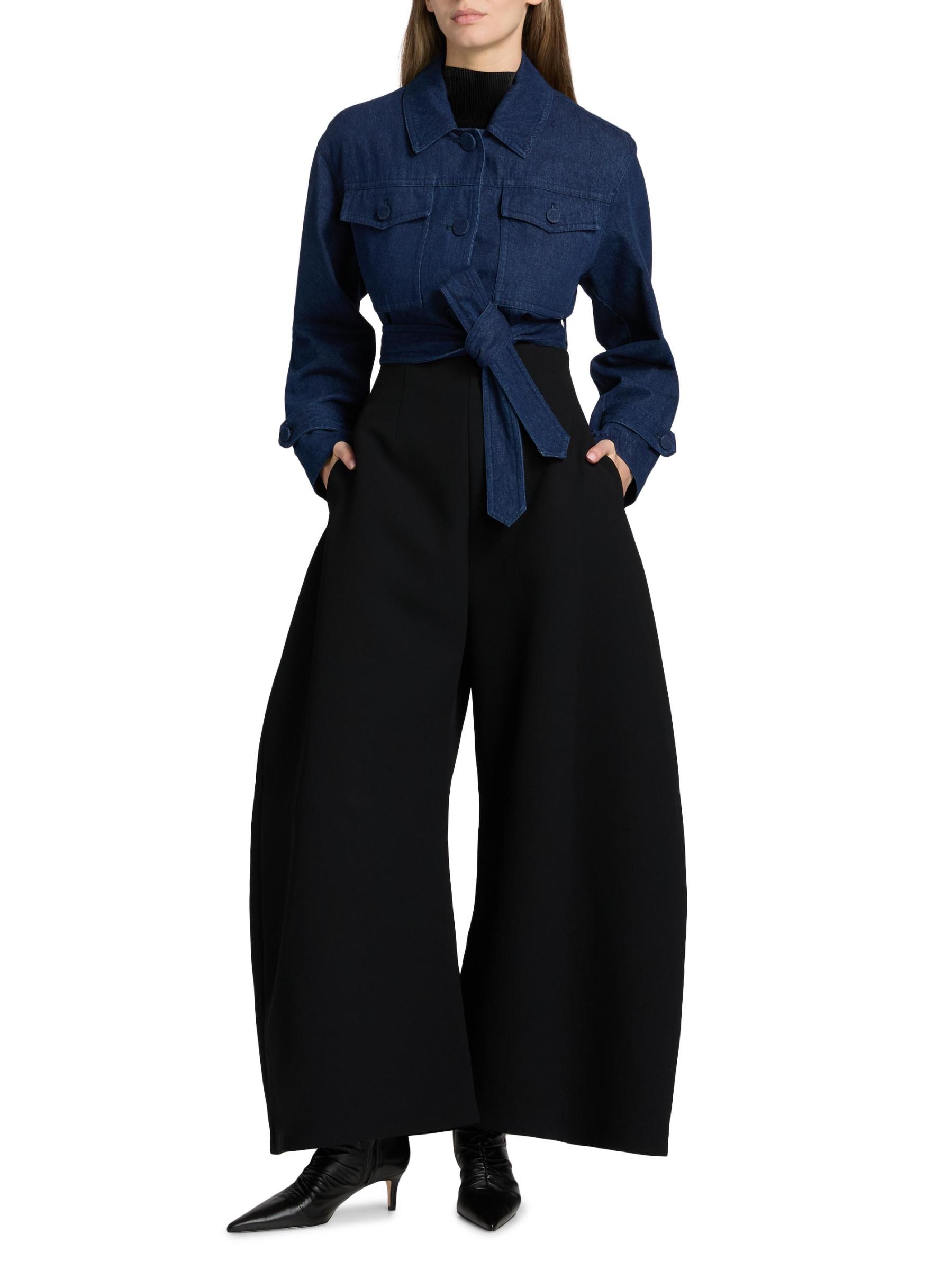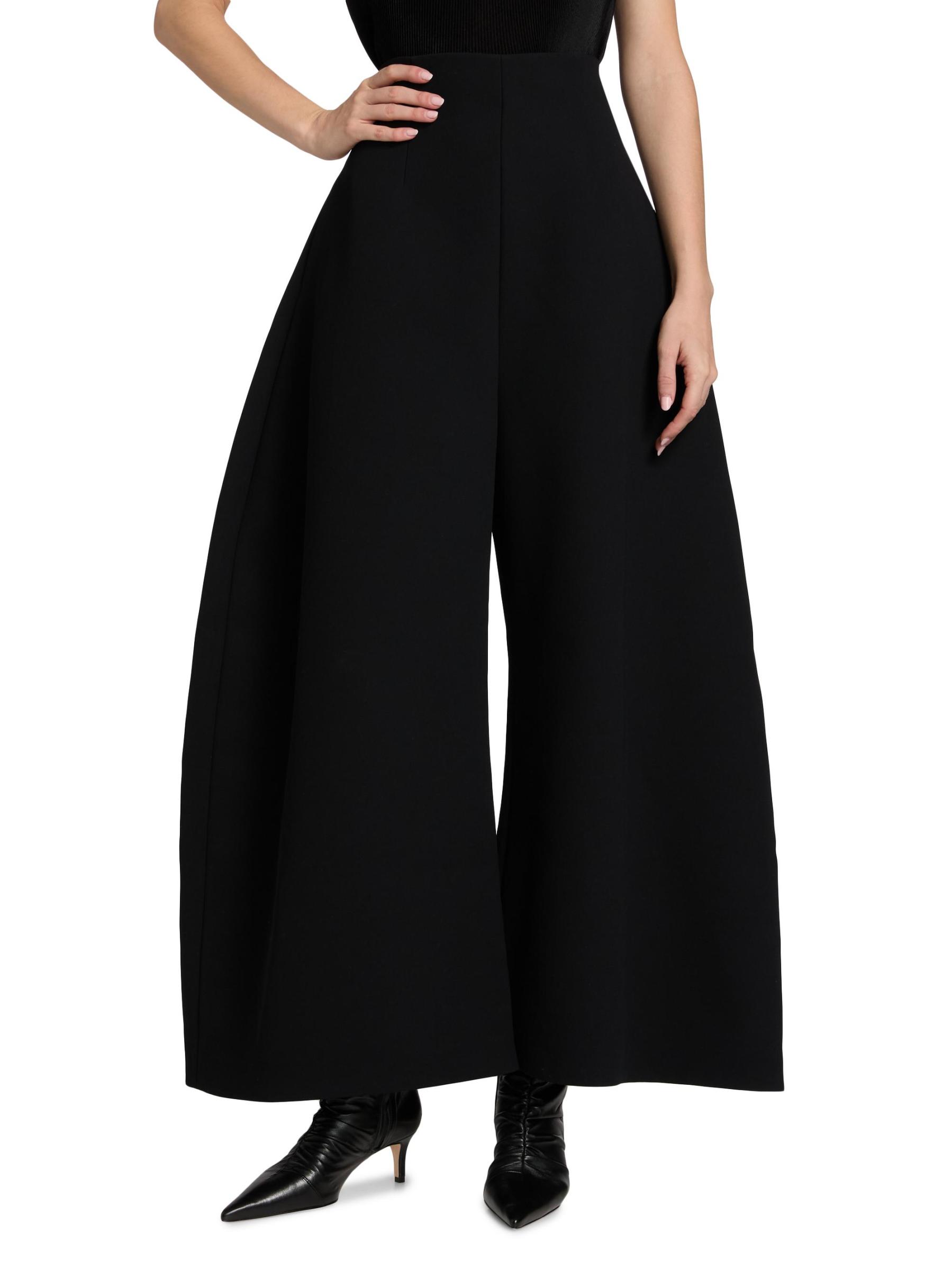 تم تصميم هذا البنطال المستدير من AW.A.K.E. Mode في صورة ظلية عالية الارتفاع ومريحة. تضفي الألواح الجانبية على الأرجل على شكل بالون.