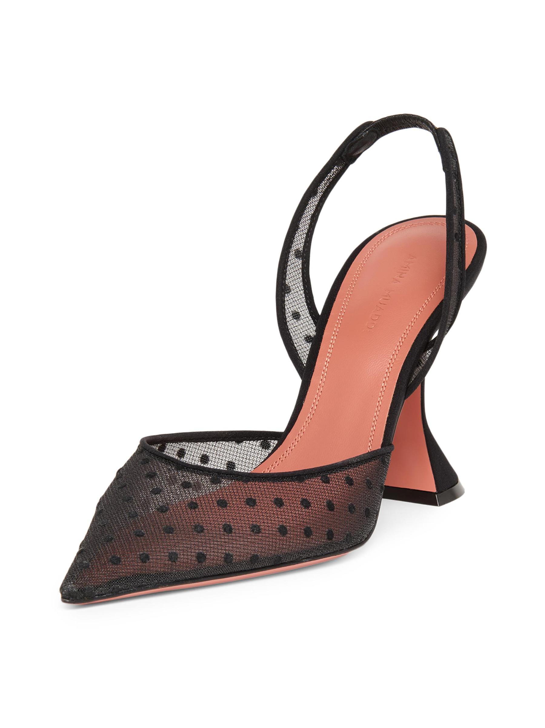 صُنعت أحذية هولي سلينغ باك هذه من Amina Muaddi في إيطاليا من الدانتيل مع نقشة منقّطة وتتميز بمقدمة مدببة وكعب هرمي.نقطة إصبع القدم سهل الارتداء طبقة علوية من النايلون/القماشية/الحرير بطانة من النايلون/الجلد نعل من الجلد/TPU صُنع في إيطاليا
