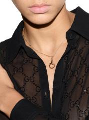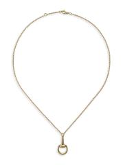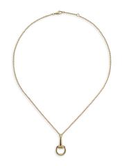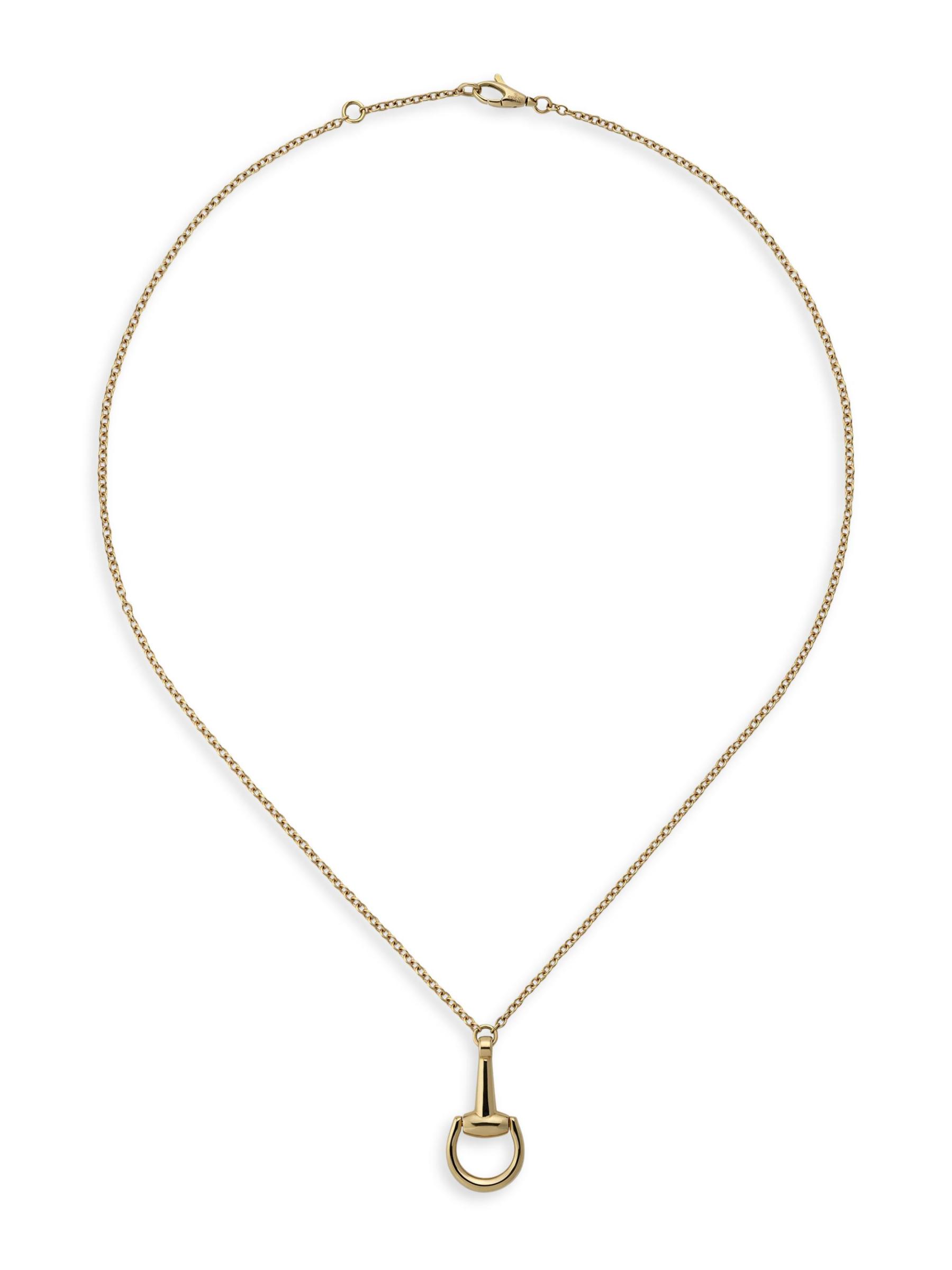 من مجموعة هورسبيت. تُبرز قلادة غوتشي المصنوعة من الذهب الأصفر عيار 18 قيراطًا زخارف الحصان المميزة للعلامة التجارية.