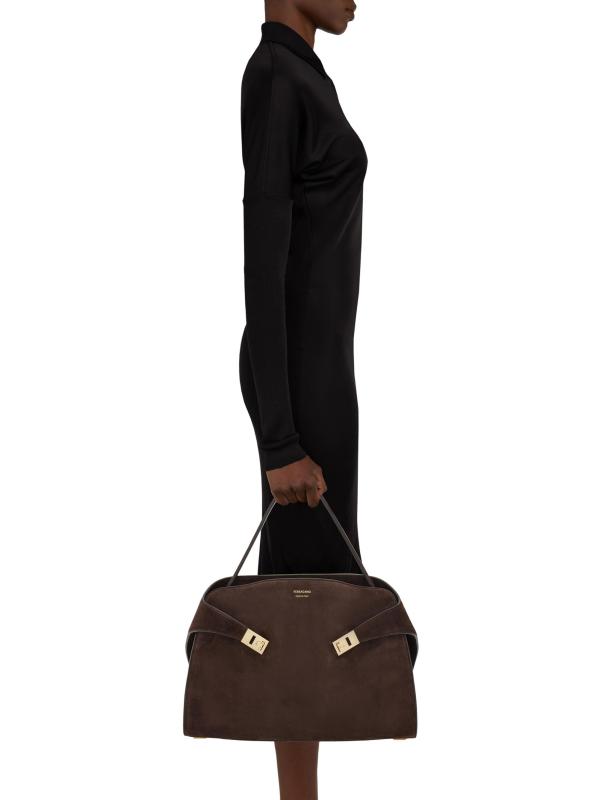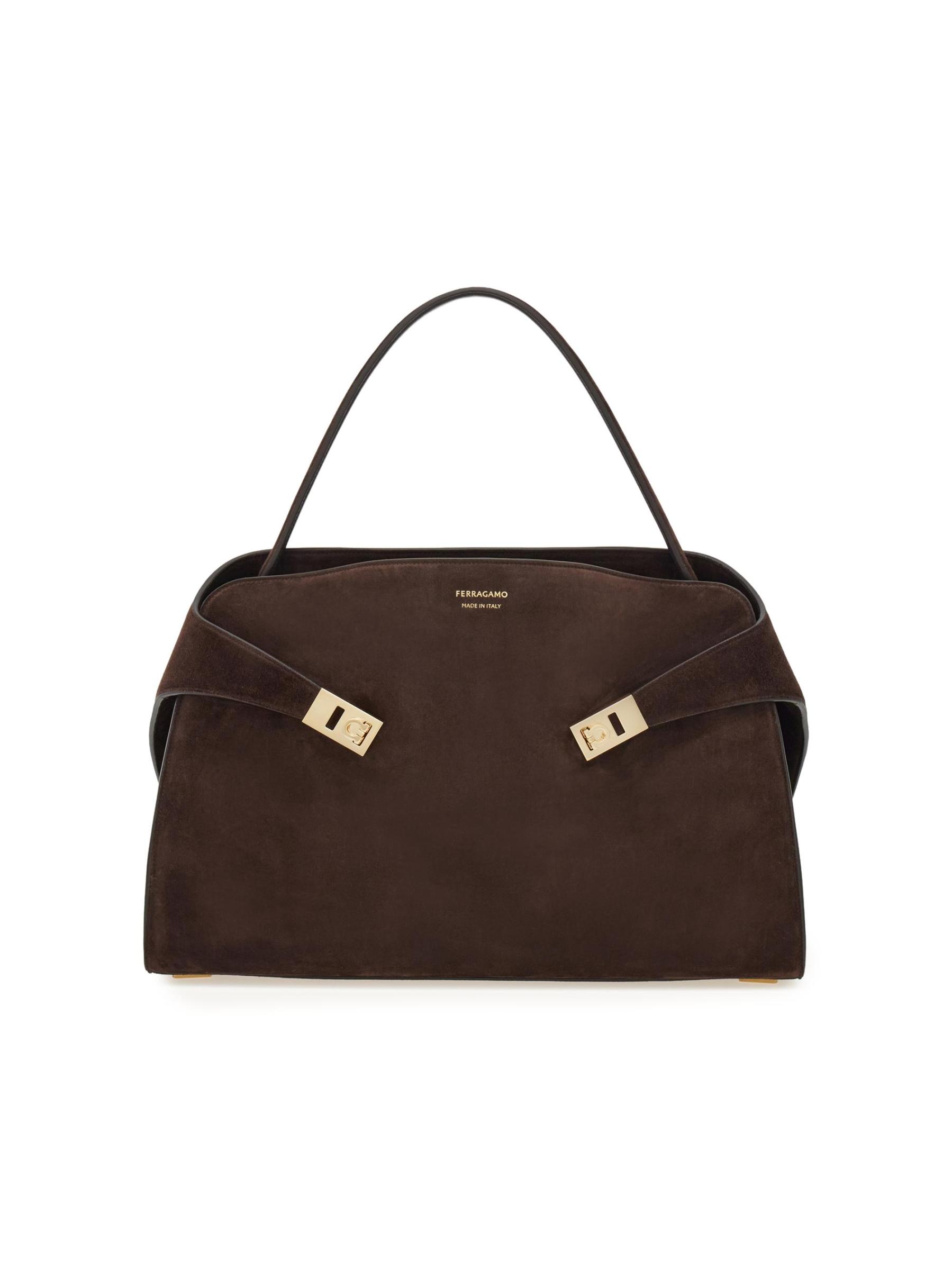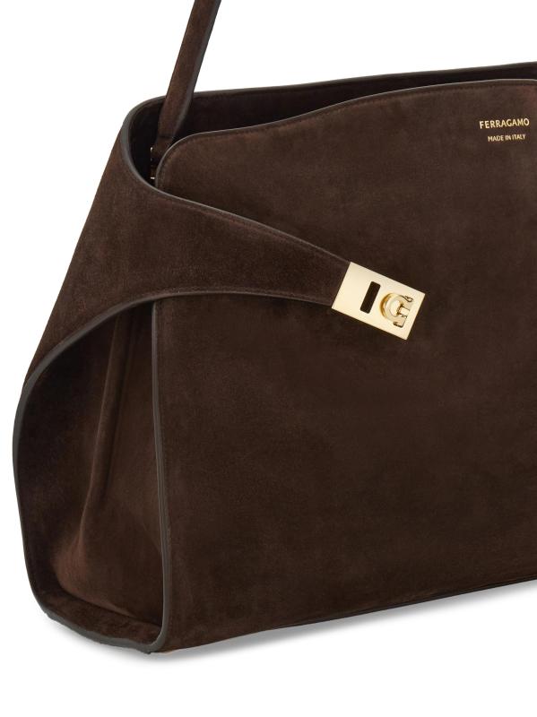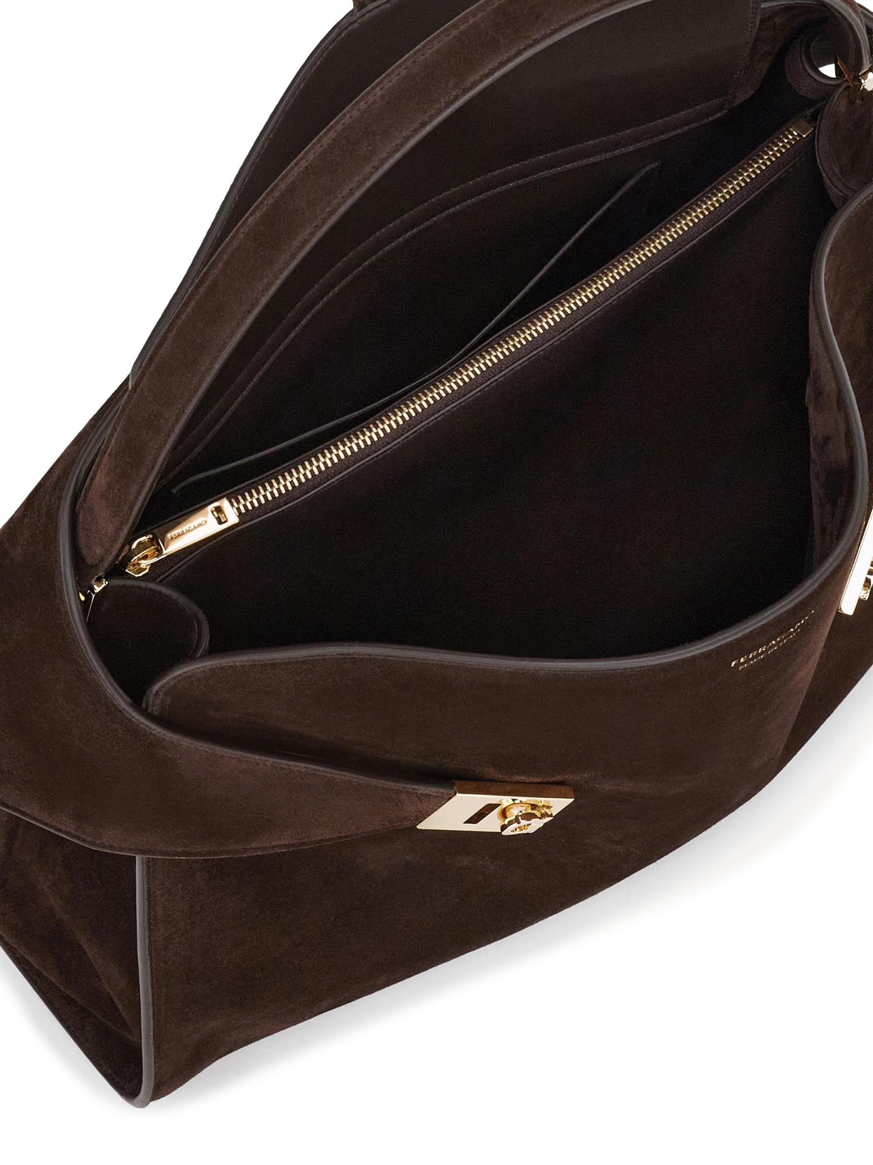 صُنعت حقيبة الكتف Hug من FERRAGAMO في إيطاليا من الجلد المدبوغ ومزينة بأجزاء صلبة ذهبية اللون.