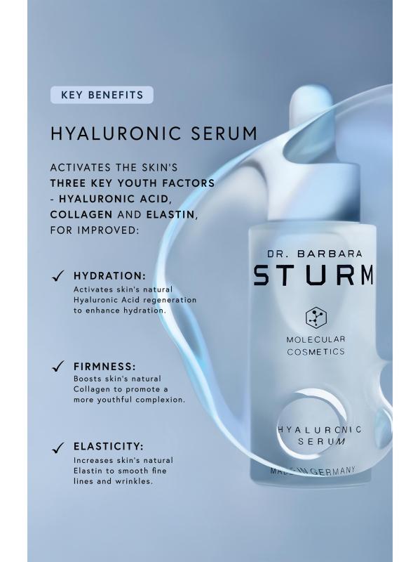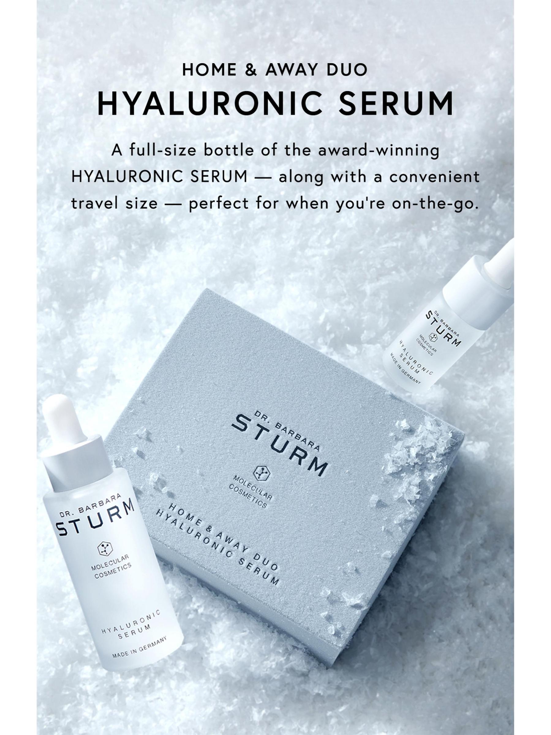 زجاجة كاملة الحجم من مصل الهيالورونيك الحائز على جوائز من الدكتورة باربرا ستورم، إلى جانب حجم مناسب للسفر أثناء التنقل. ينشط هذا المصل تجديد حمض الهيالورونيك الطبيعي للبشرة لتعزيز الترطيب ويساعد على تعزيز الكولاجين الطبيعي للبشرة لتعزيز بشرة أكثر شبابًا، بينما يساعد على زيادة الإيلاستين الطبيعي للبشرة لتنعيم الخطوط الدقيقة والتجاعيد. بقيمة 435 دولارًا. صُنع في ألمانيا.