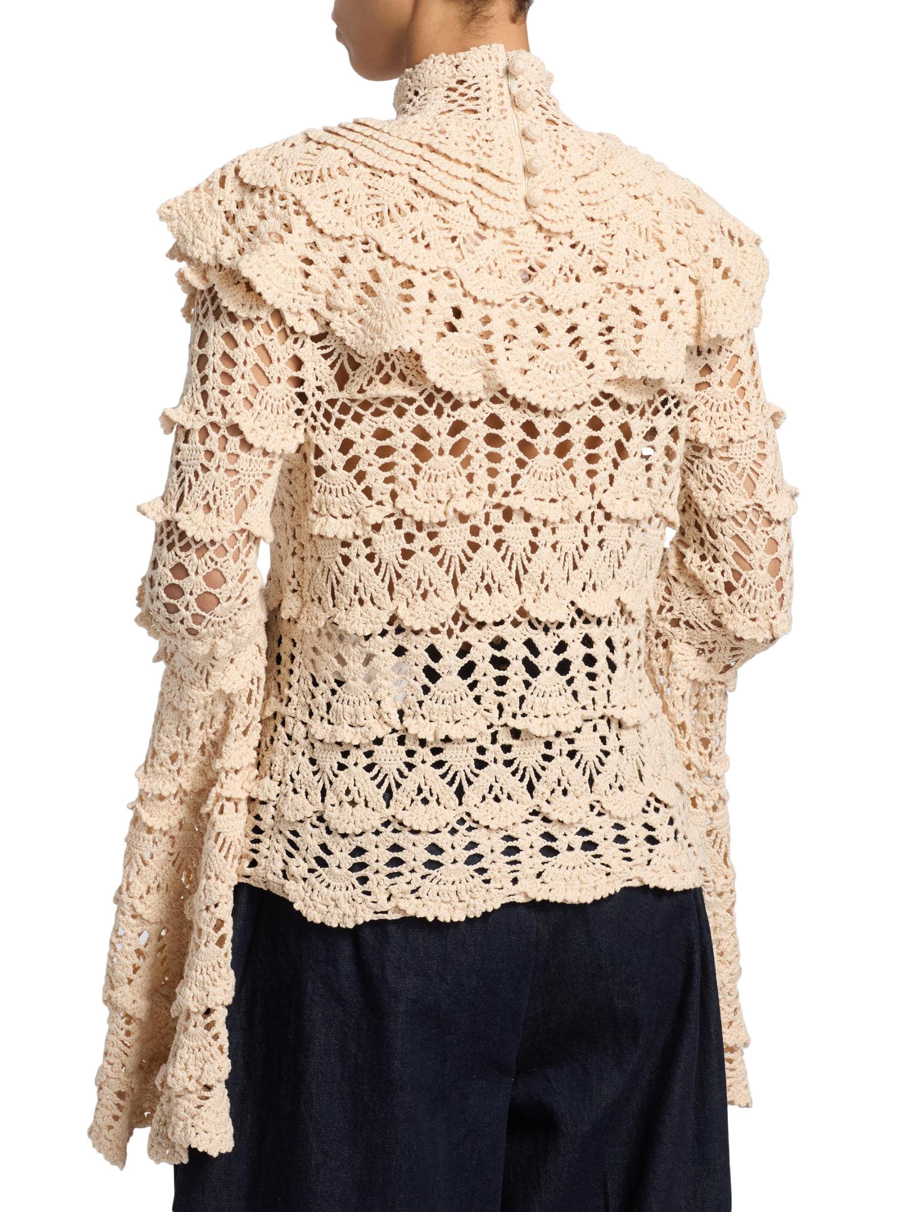 تتميز سترة الكروشيه Hypnotic المصنوعة يدويًا من Zimmermann بكشكشة متتالية وأساور مخددة مبالغ فيها للحصول على صورة بوهيمية فريدة.ياقة ستاند أكمام طويلة زر خلفي للإغلاق قطن بنسبة 100% تنظيف جاف مستوردة