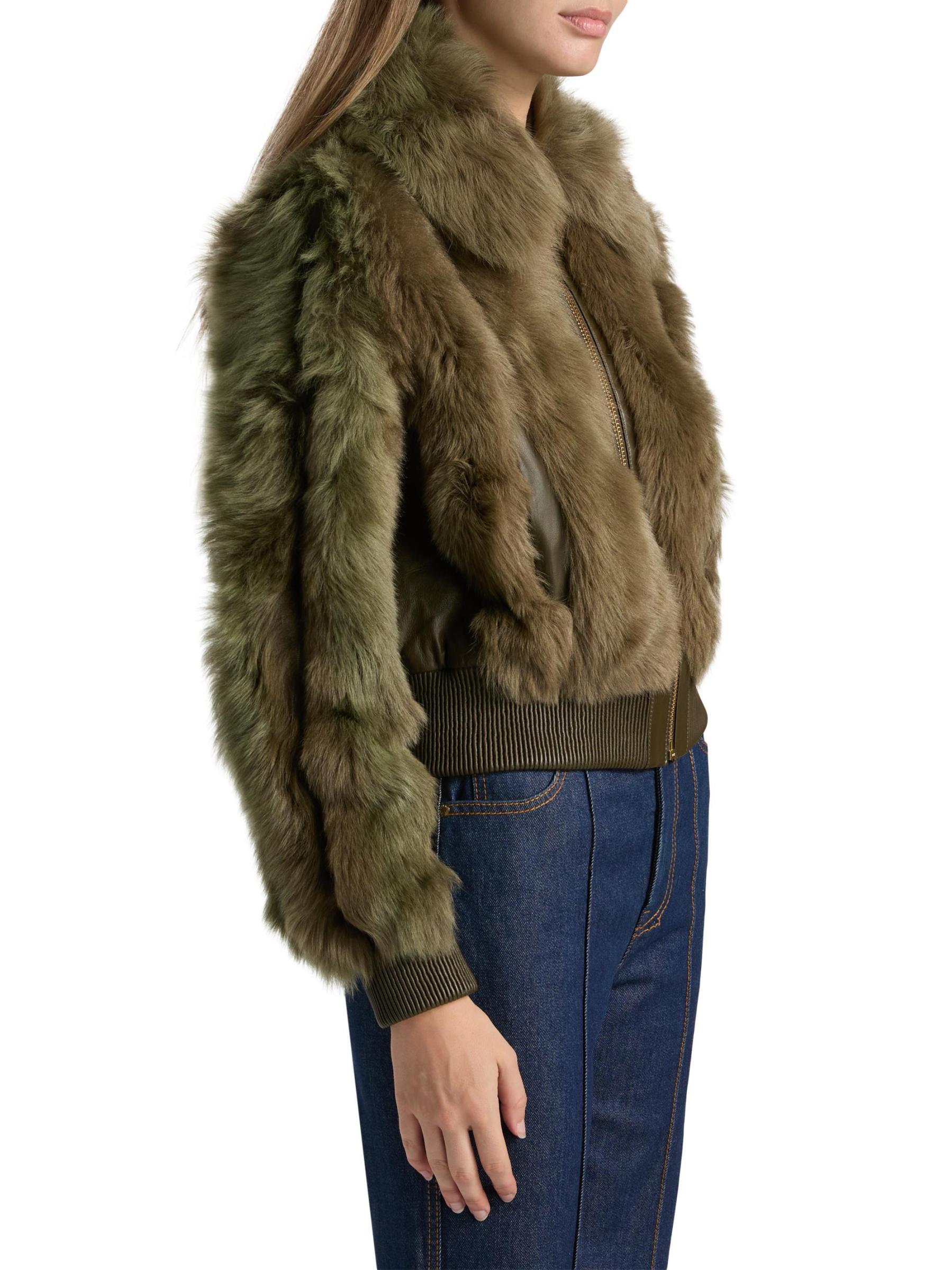 من مجموعة هيبونتك. جاكيت بومبر من زيمرمان مصنوع من قماش الشيرلينغ المخملي ومزين بتصميم منكمش.طوق سبريد أكمام طويلة وأساور مضلعة جيبان جانبيان إغلاق بسحّاب أمامي 100٪ شيرلينغ لحم الضأن البطانة: 75% فيسكوز/ 25% حرير نوع الفراء: شيرلينغ الأغنام المصبوغ أصل الفراء: تركيا التنظيف الجاف من قبل أخصائي الفراء مستوردة