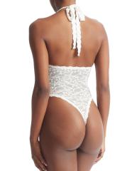 تتميّز دمية I Do Shimmer المذهلة للزفاف من Hanky Panky المصنوعة من الدانتيل برقبة رسن مع حروف ملونة وظهر ثونغ.