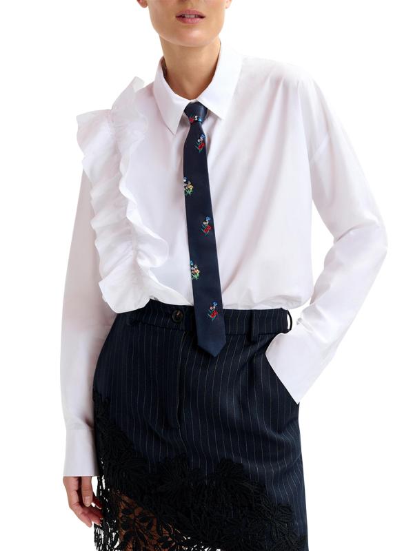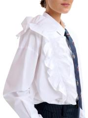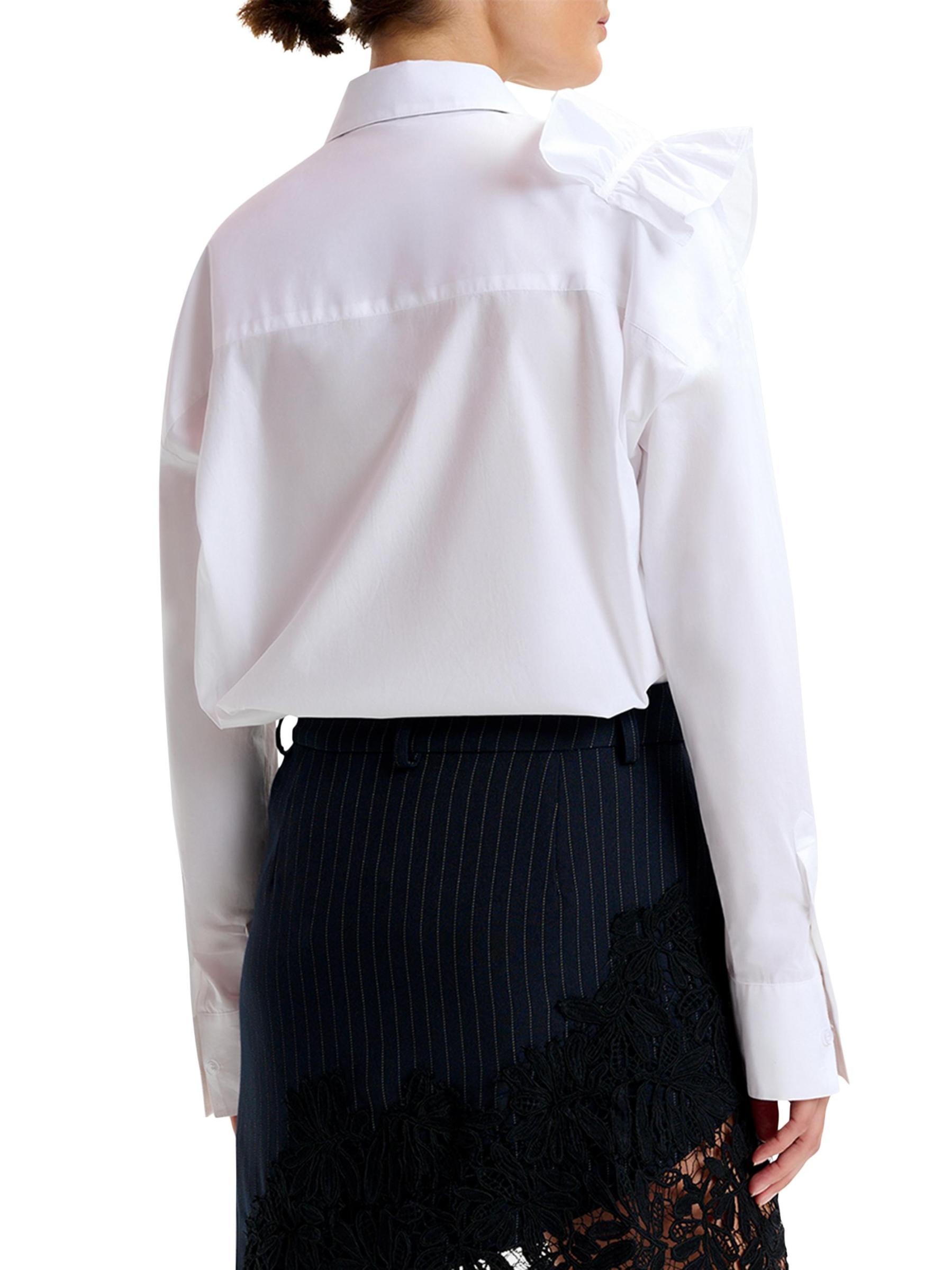 صُنع قميص Ibody بأزرار أمامية من Essentiel Antwerp من البوبلين القطني الناعم ومزين بكشكشة متتالية على الكتف لمظهر ديناميكي.