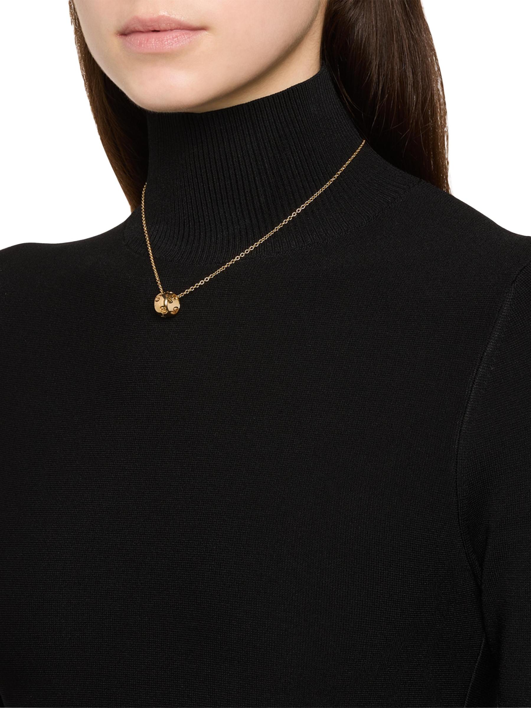من مجموعة الأيقونات. تتميّز قلادة غوتشي المصنوعة من الذهب الأصفر عيار 18 قيراطًا بزخرفة GG المقطوعة على قلادة مستديرة ترتكز على سلسلة كابلات رقيقة.