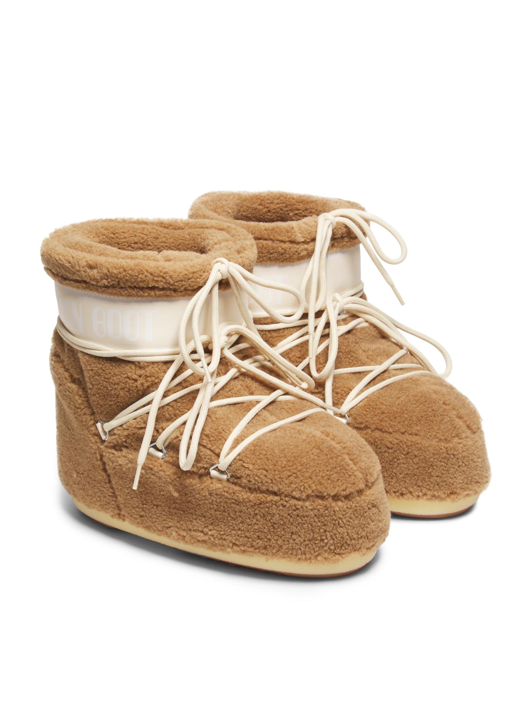 تتميز أحذية Icon Low هذه من Moon Boot بتصميم الصوف المزخرف مع حروف شعار متباينة على الكاحل والأربطة.