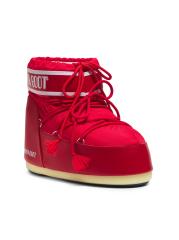 يُظهر حذاء Icon Low من Moon Boot التصميم المميز للعلامة التجارية بنعل سميك ورباط مطاطي.