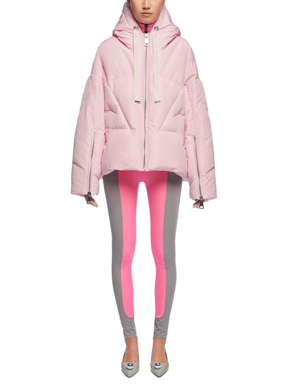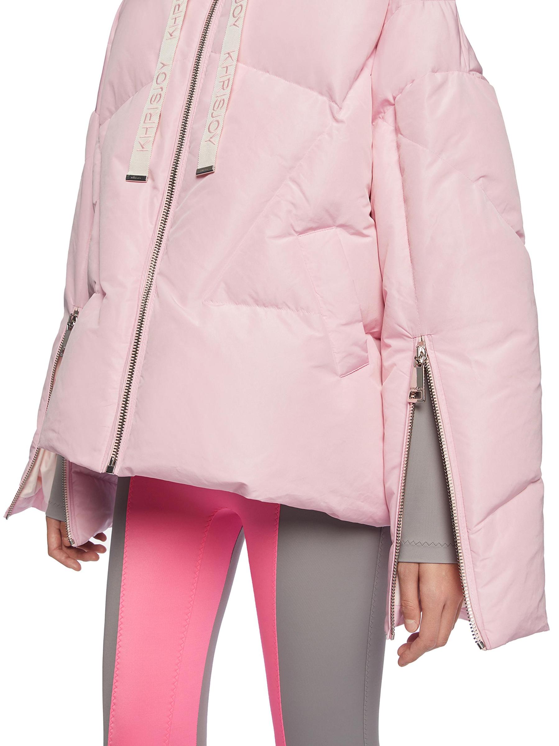 ترتقي سترة التفتا الأيقونية ميلانو من KhrisJoy بالتصميم المبطن بحشو الريش والريش. تتميز هذه القطعة، التي تم تشطيبها بنمط هندسي مبطن، بغطاء رأس برباط وأساور بسحّاب ممتد.