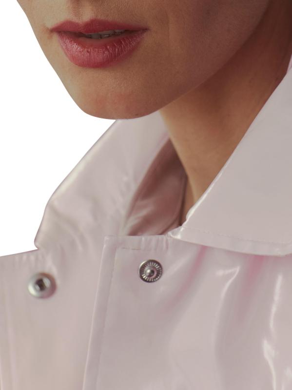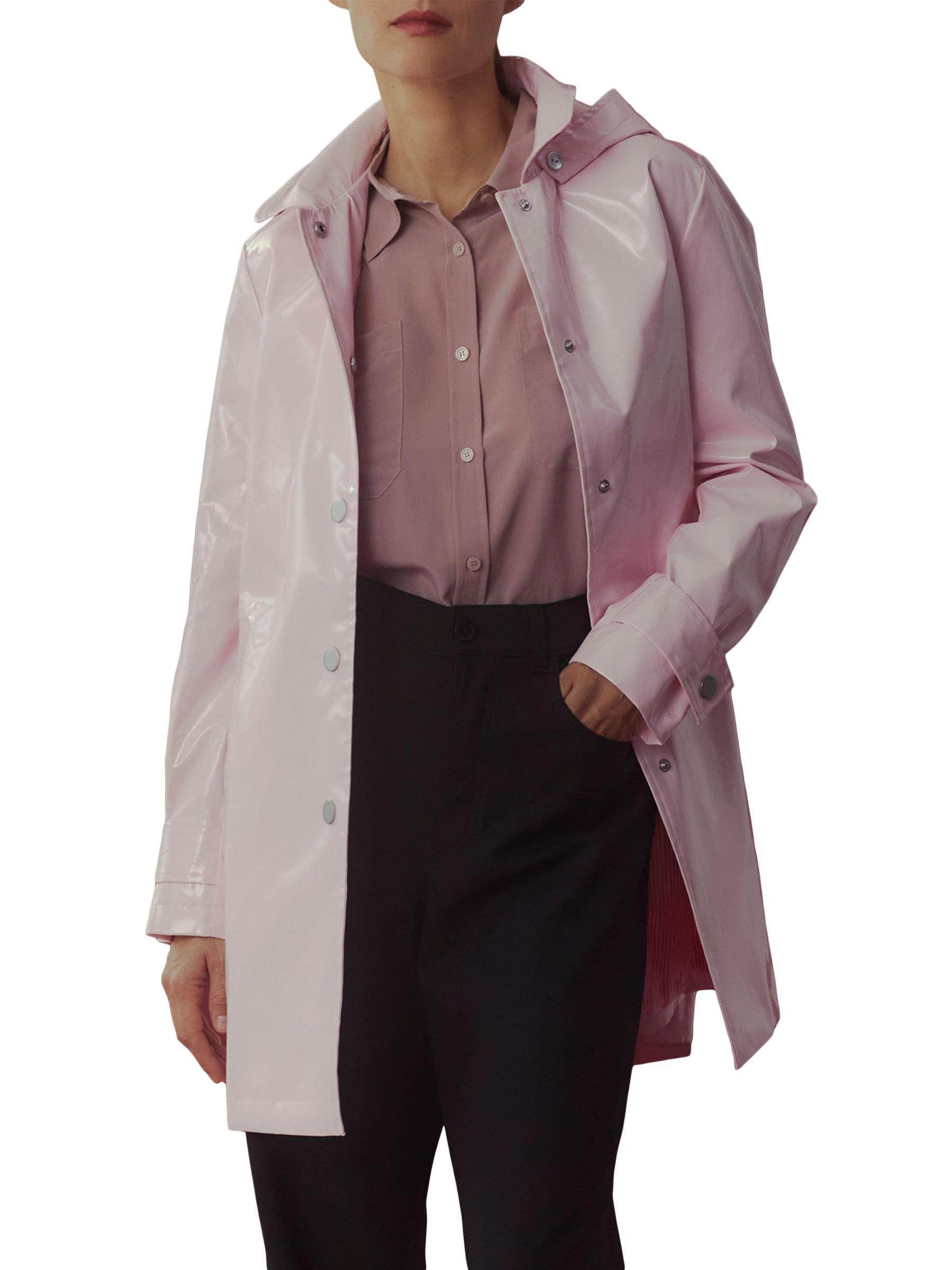 يتميز معطف المطر Iconic Princess من Jane Post بغطاء رأس قابل للإزالة وياقة واسعة وجيوب جانبية منزلقة. يُكمل نسيج يشبه الفينيل وإغلاق بأزرار أمامية هذا النمط الطويل.