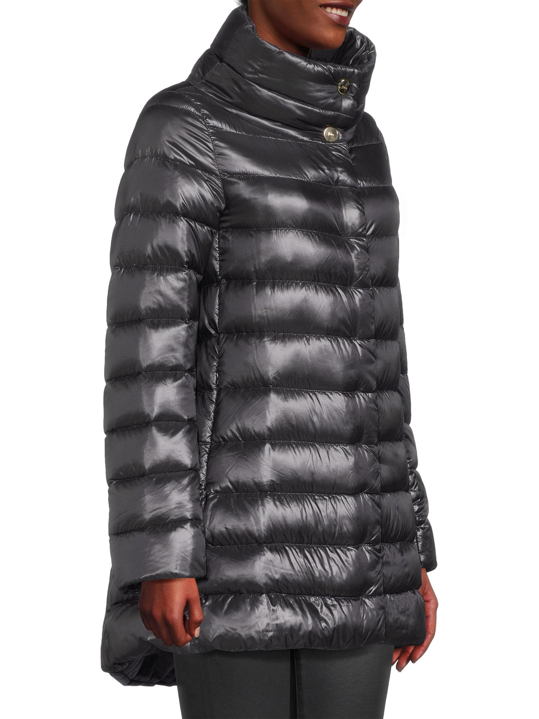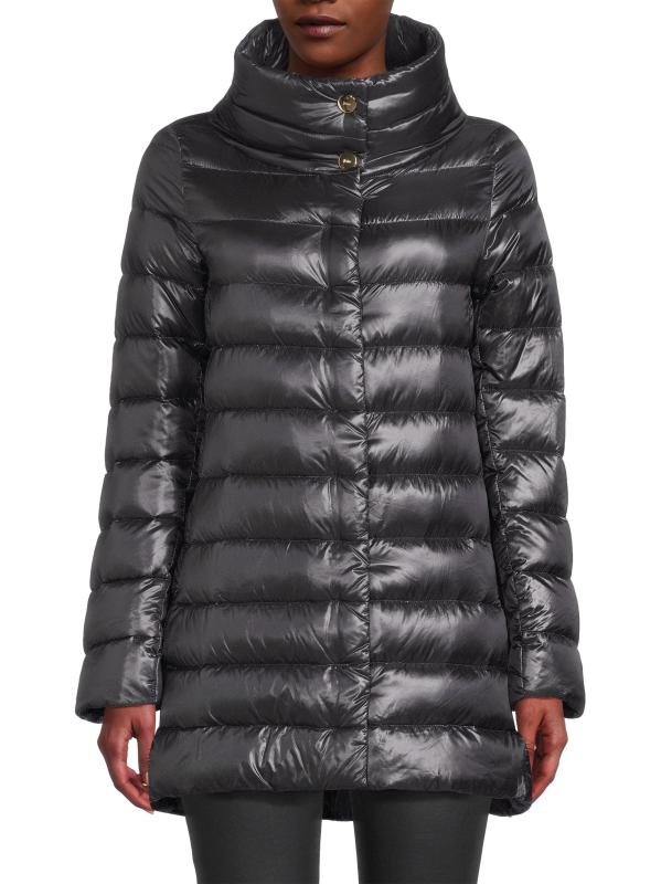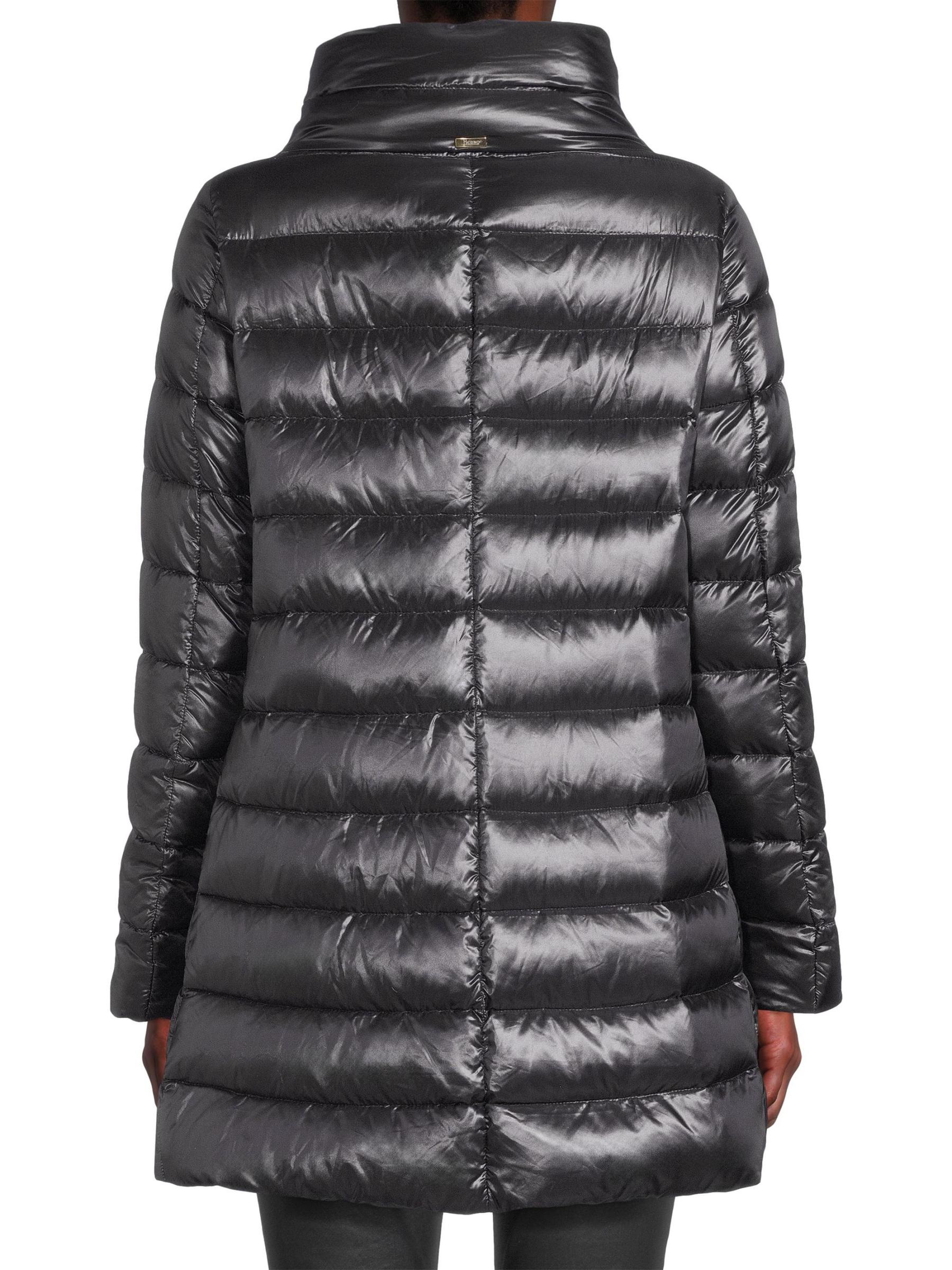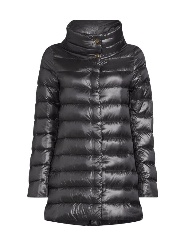 من مجموعة Iconico. يتميز معطف Amelia المبطّن من Herno بياقة ثابتة وجيوب جانبية بسحّاب وإغلاق أمامي بمشبك.