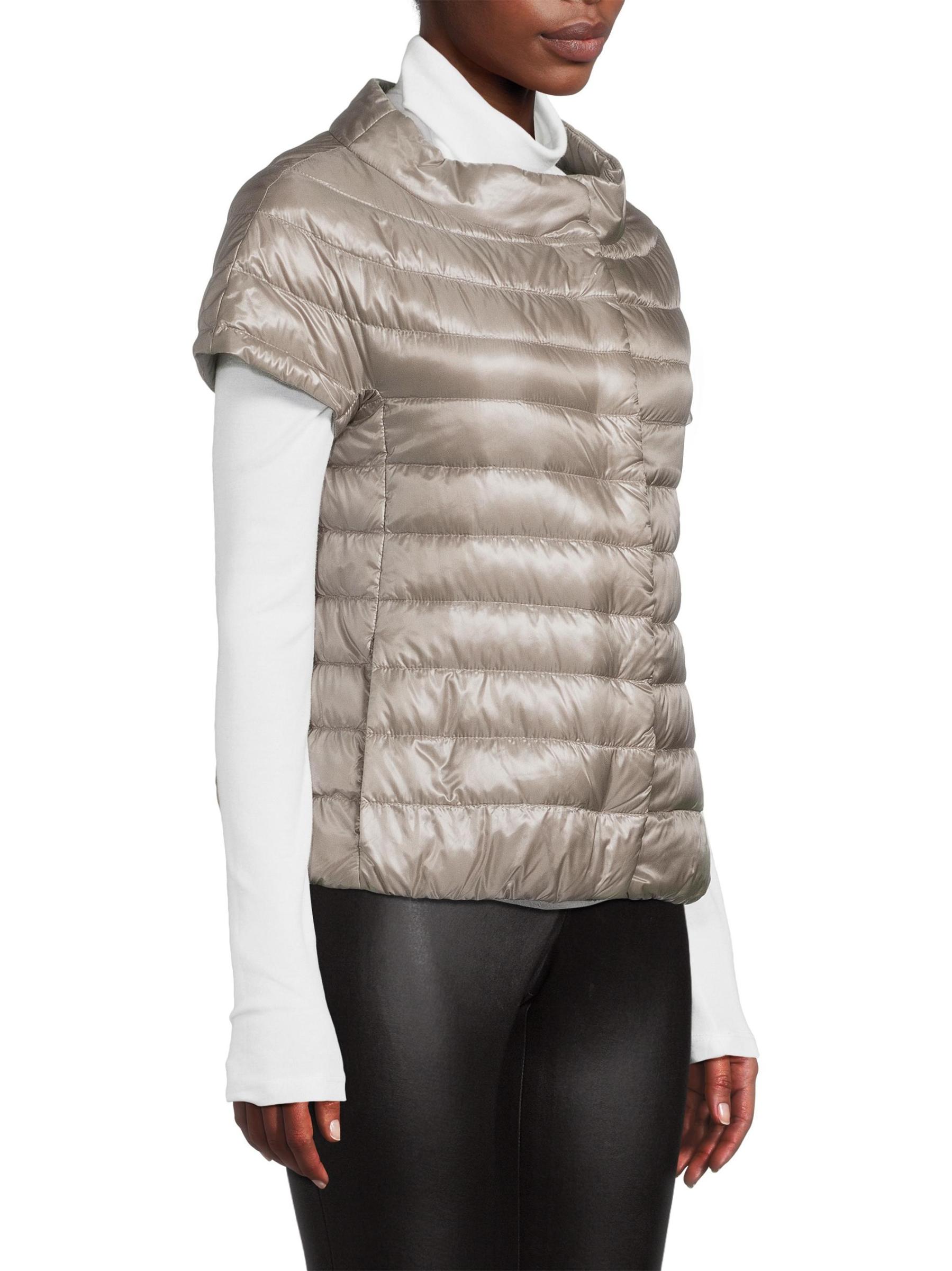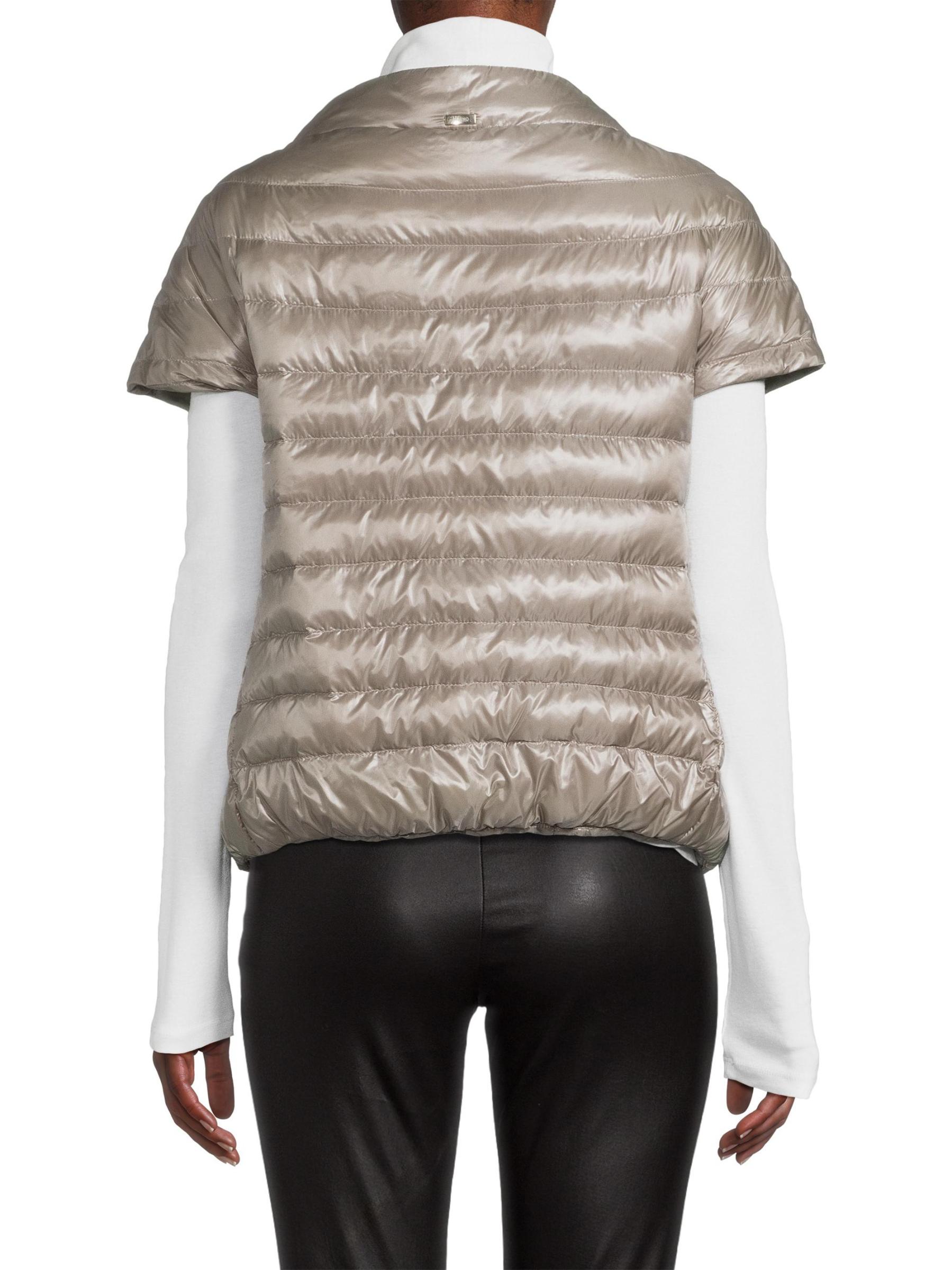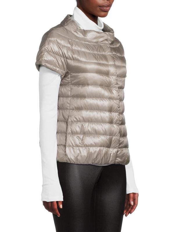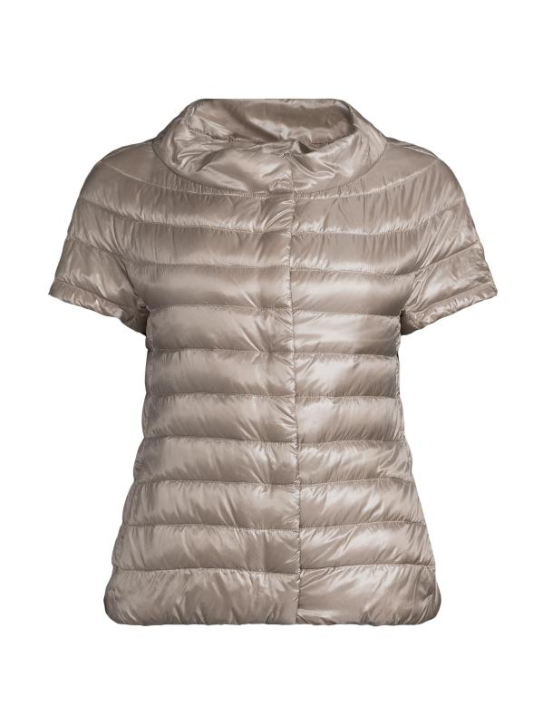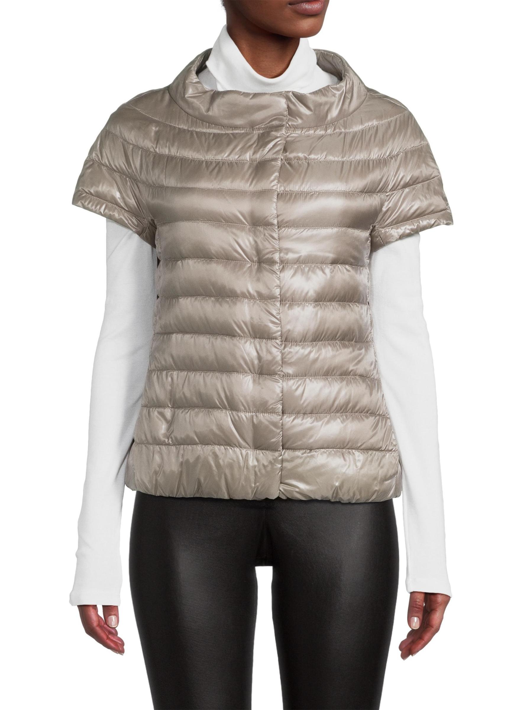 يبرز هذا الجاكيت المقاوم للماء من هيرنو غلافه المبطن اللامع والحشو الدافئ. تحدد أكمام القبعة مظهر الملابس الخارجية.ياقة ذات قاعدة عريضة أكمام كاب جيوب جانبية إغلاق أمامي بمشبك 100% بولي أميد مُبطّن ذاتيًا الحشو: 90% أسفل/10% ريش غسيل يدوي مستوردة