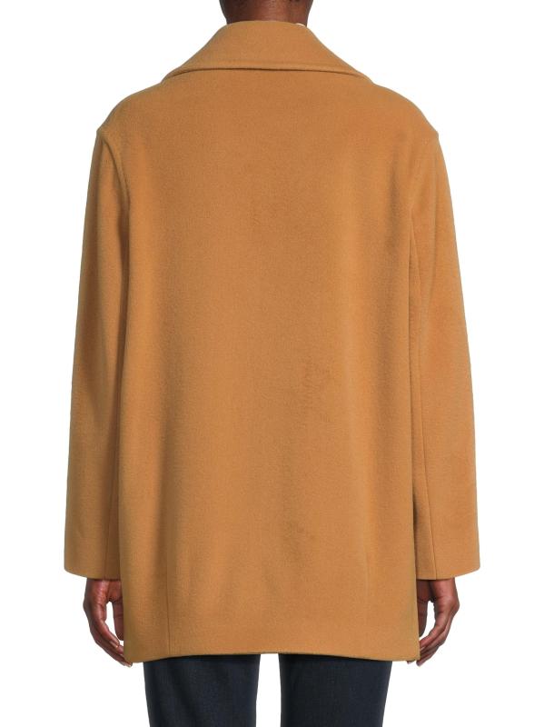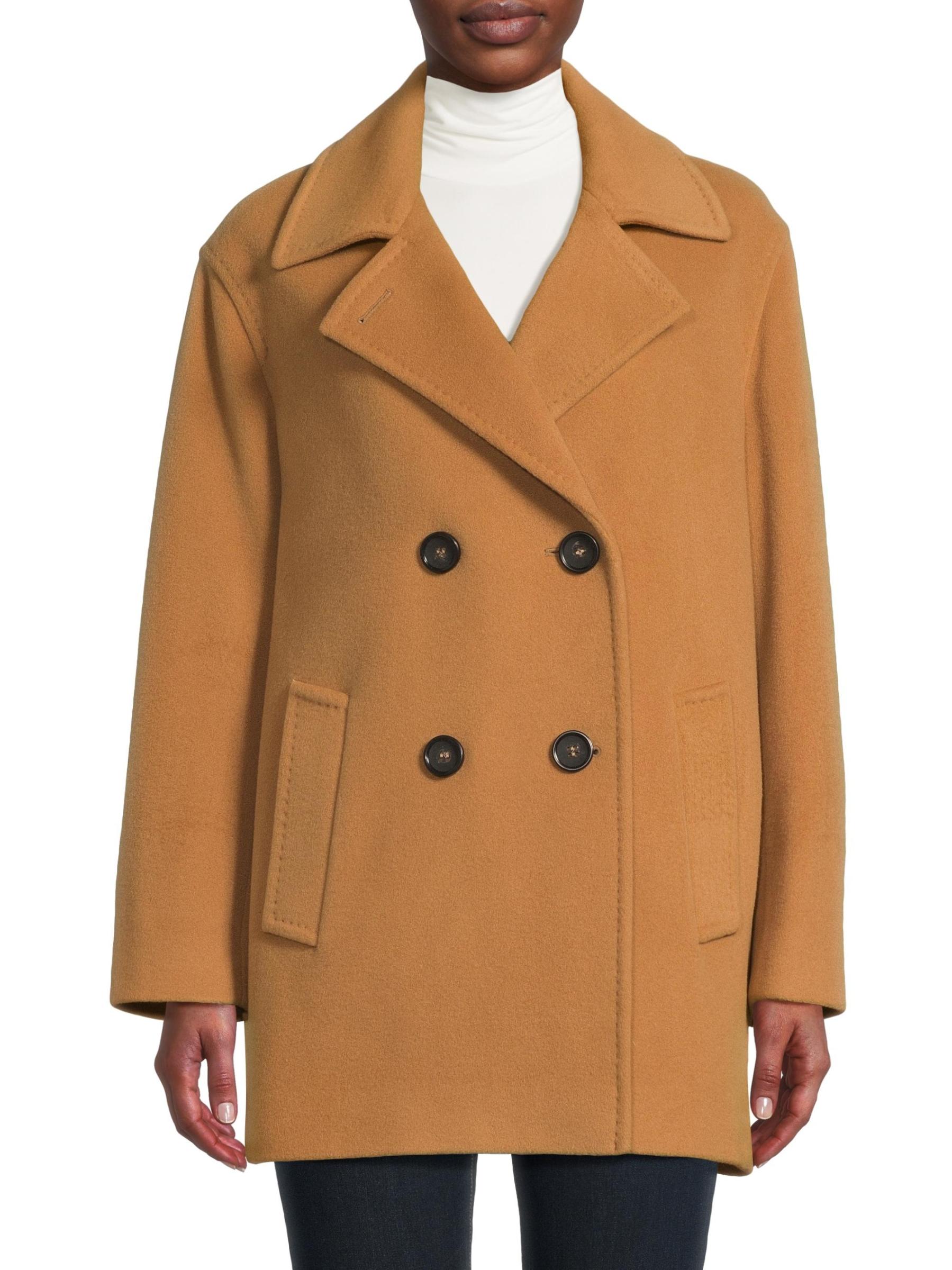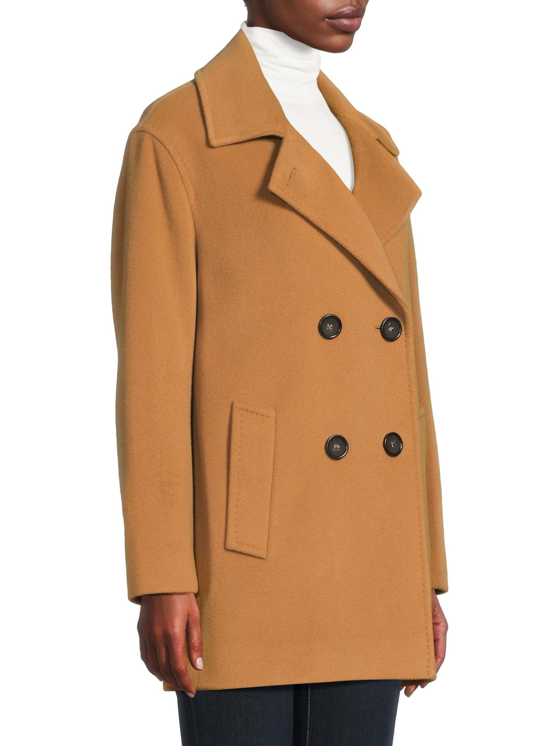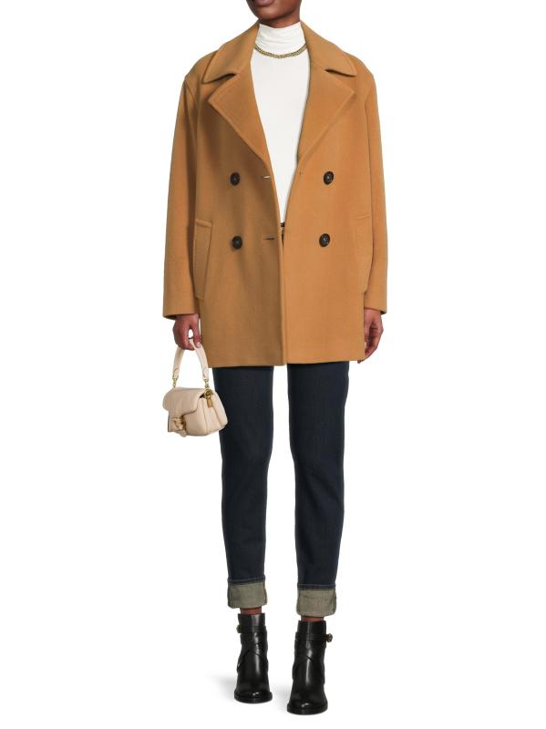 من مجموعة الأيقونات. صُنع معطف الطاووس مزدوج الصدر هذا من Cinzia Rocca من مزيج الصوف والكشمير، ويتميز بياقة مشقوقة وجيبين جانبيين.