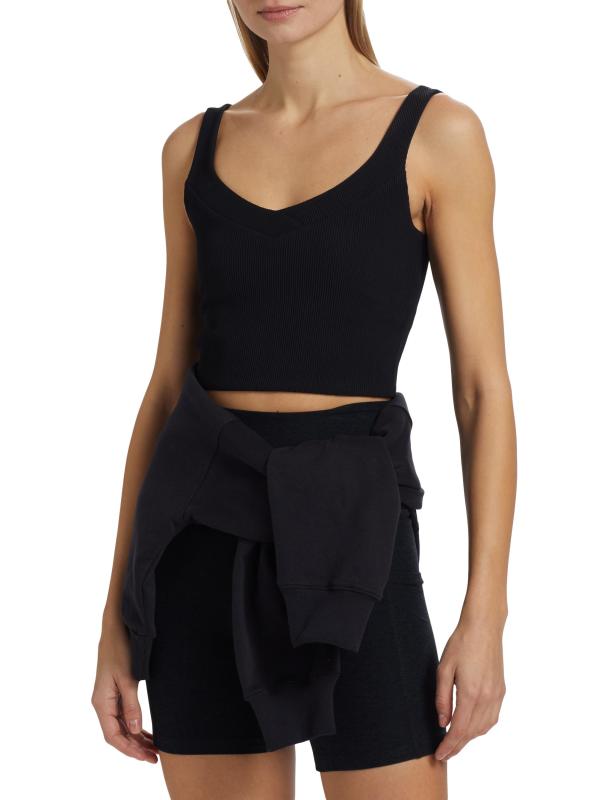 تم تصميم تانك Impulse القصير من Beyond Yoga، المصنوع من مزيج مطاطي محبوك على شكل أضلاع، بتقويرة رومنسية وأحزمة ثابتة وتقليم بلون مغاير.