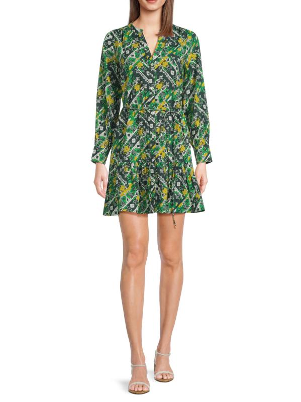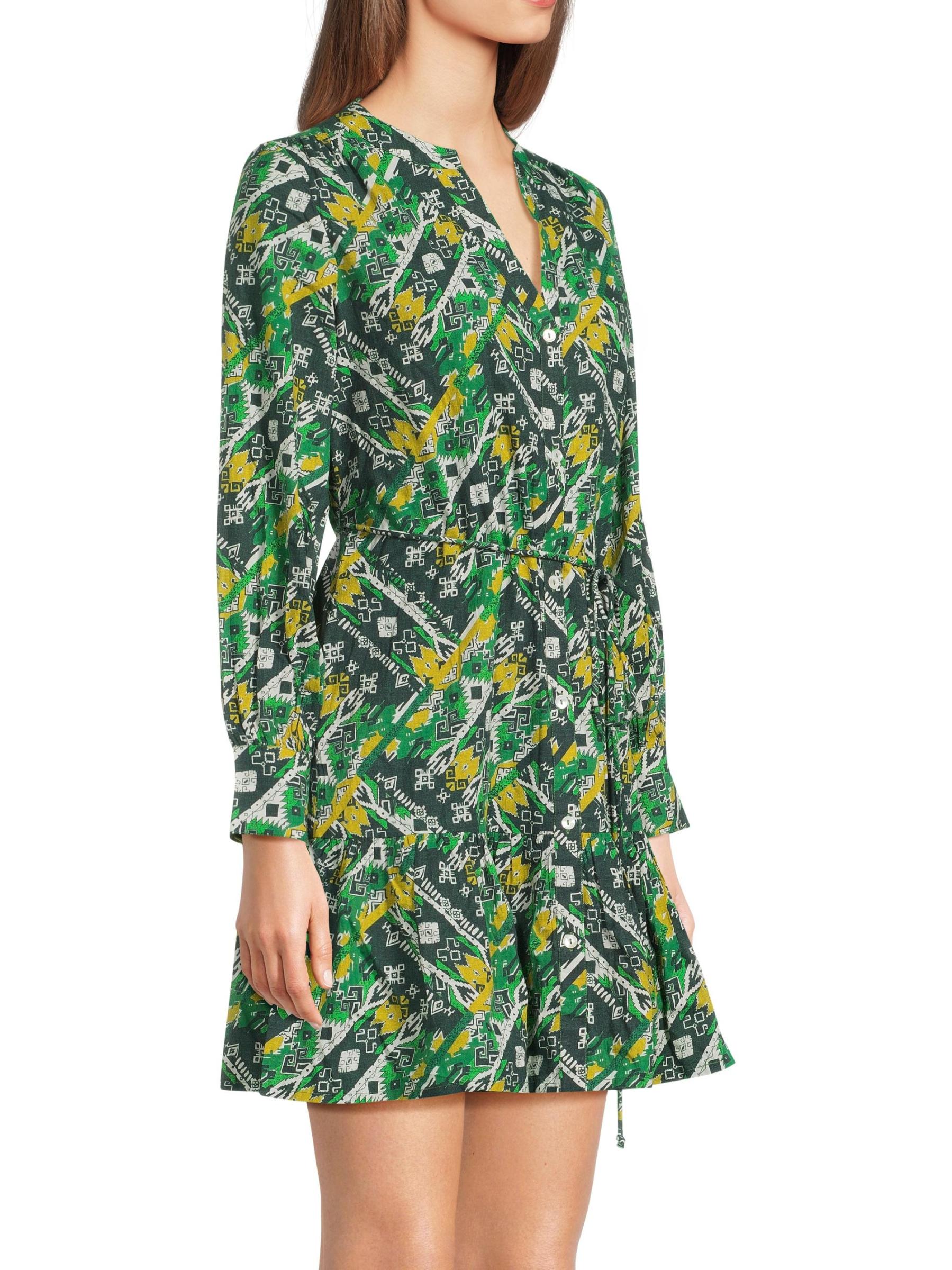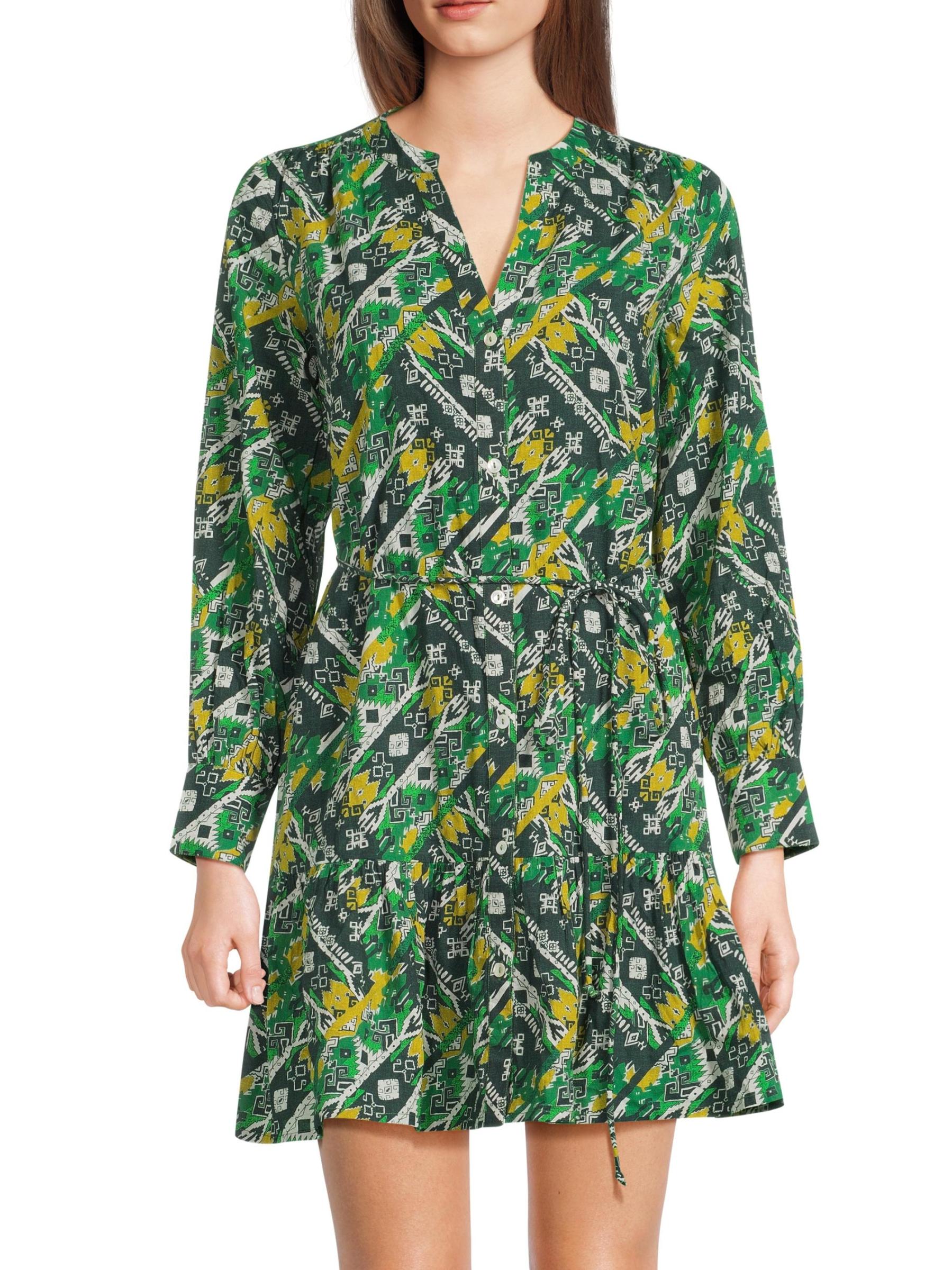 تم تزيين فستان إينيس القصير من ATM Anthony Thomas Melillo من القطن بطبعة تجريدية تتميز بحزام قابل للربط الذاتي.رقبة على شكل حرف V أكمام طويلة إغلاق بأزرار أمامية قطن بنسبة 100% غسيل يدوي مستوردة