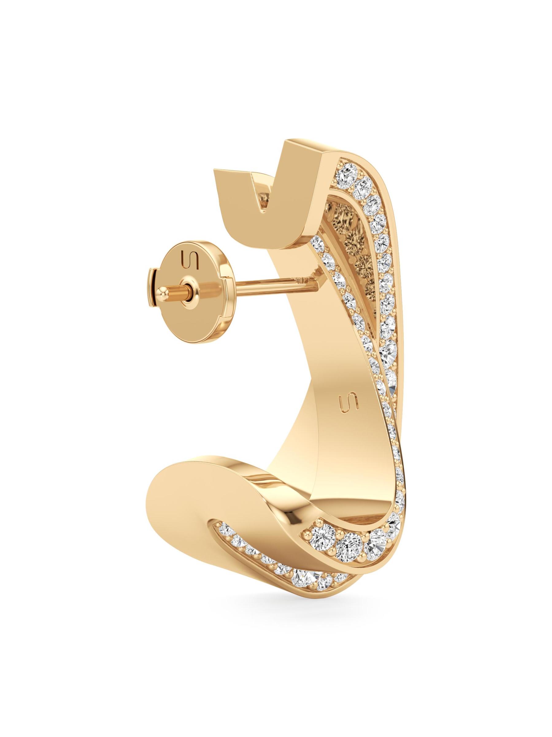 من مجموعة إنفينيت. مستوحاة من روابط الحب الأبدي، هذه الأقراط المرصعة ثلاثية الأبعاد من Unsaid مصنوعة يدويًا من الذهب الأصفر عيار 18 قيراطًا والمرصع بالألماس المرصوف اللامع.