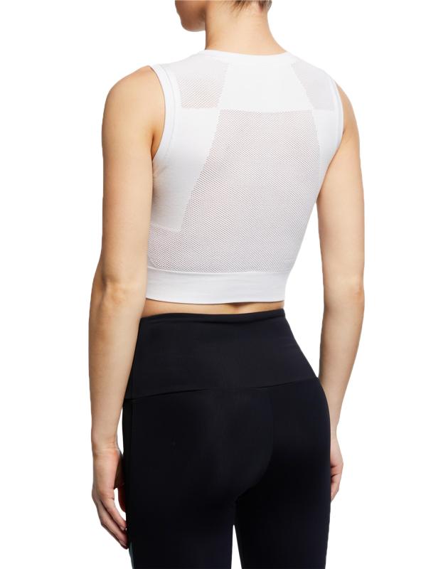تم تصميم بلوزة Infinity Active القصيرة من Blanc Noir بإدخالات شبكية لمزيد من التهوية.رقبة مستديرة بدون أكمام تسحب مودال/نايلون/سباندكس يُغسل في الغسالة مستوردة