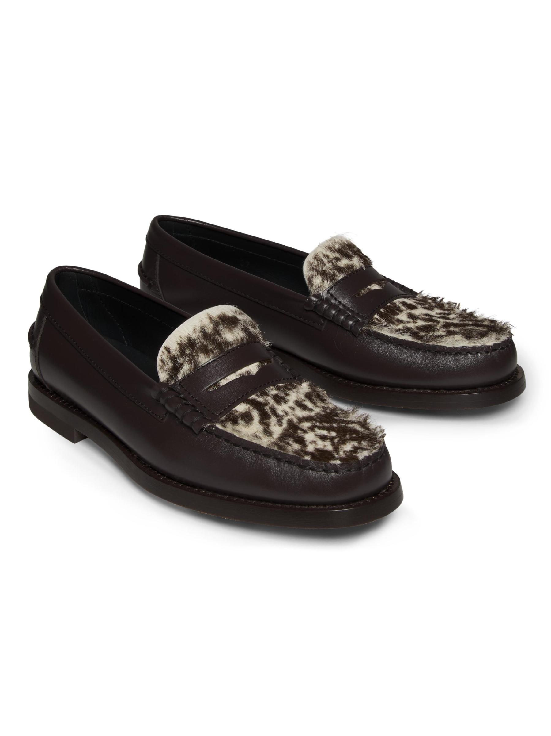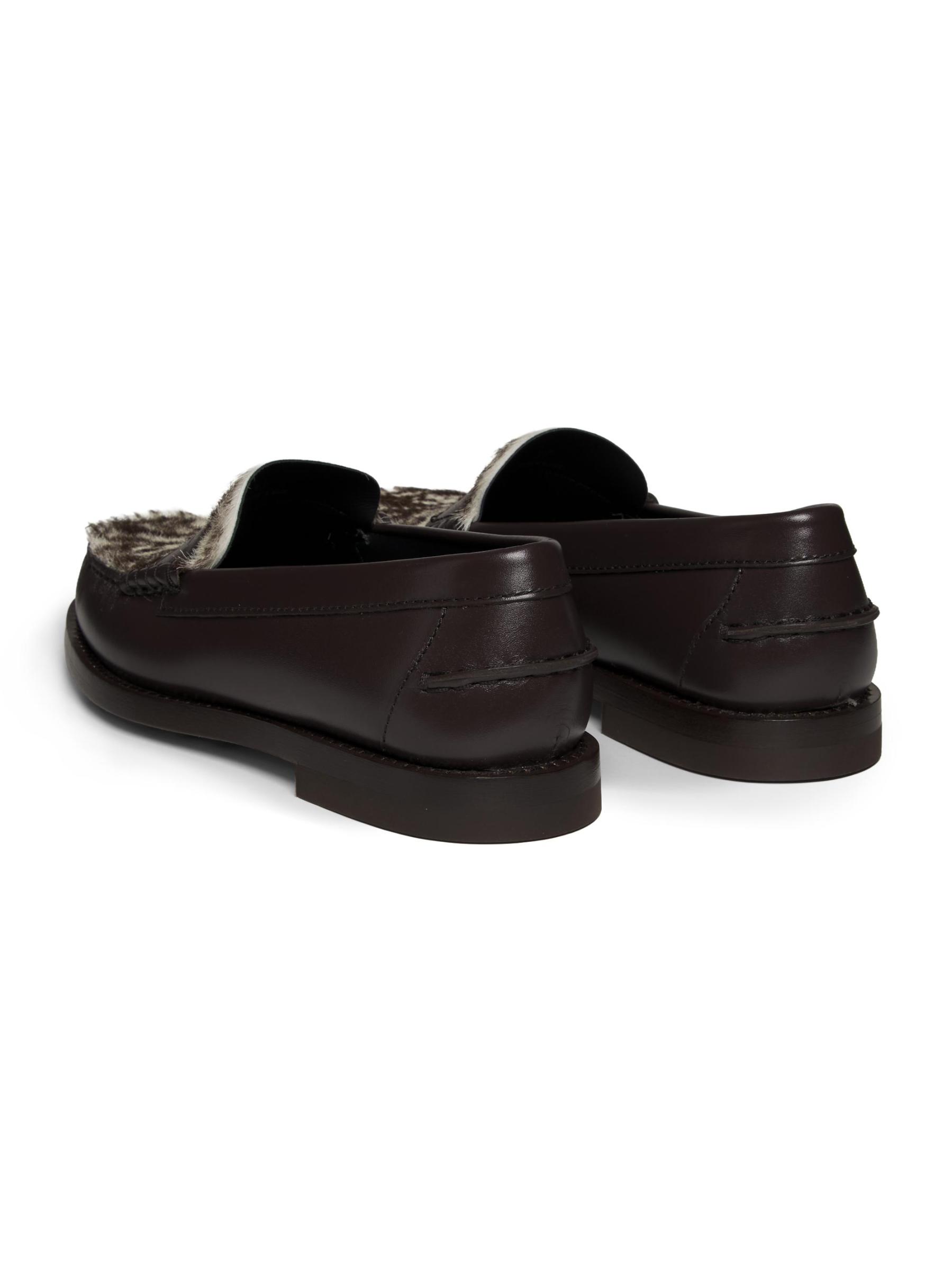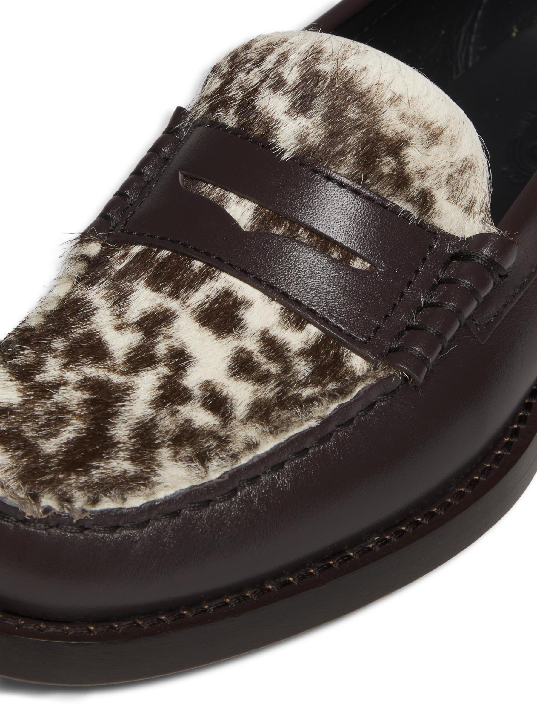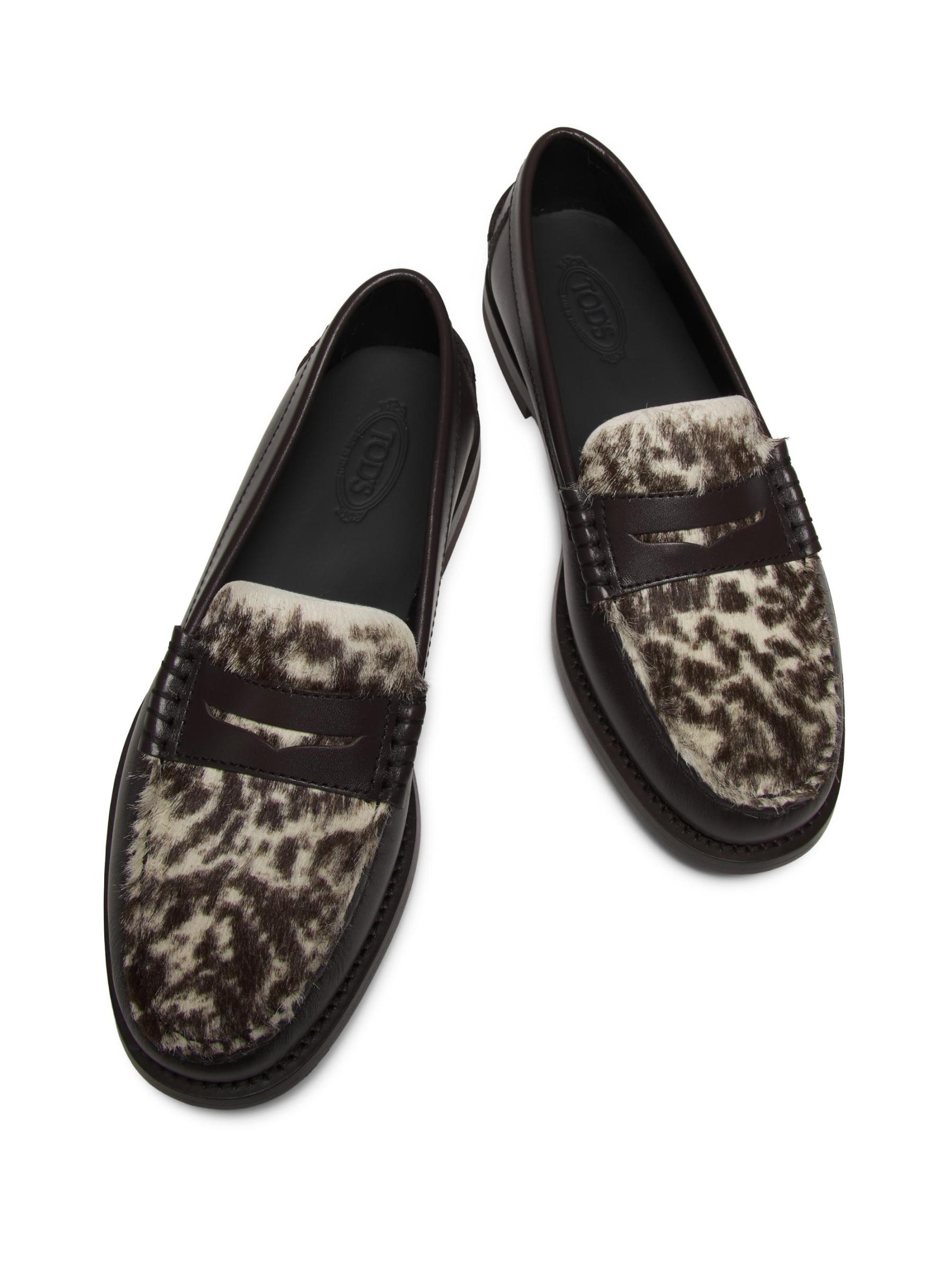 حذاء إينيز من تودز مصنوع من الجلد مع مشبك شعر حصان. يتميز هذا الزوج بشعار مختوم وشريط بيني وأصابع قدم مجمعة قليلاً.إصبع مستدير سهل الارتداء الجزء العلوي مصنوع من الجلد وشعر المهر بطانة جلدية نعل من الجلد والمطاط نوع الفراء: شعر المهر الطبيعي أصل الفراء: إيطاليا صُنع في إيطاليا
