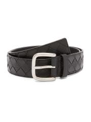 يُظهر هذا الحزام تصميم جلد Intrecciato المنسوج من بوتيغا فينيتا. صُنع هذا الطراز في إيطاليا، ويتميز بإبزيم فضي اللون.