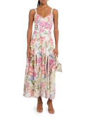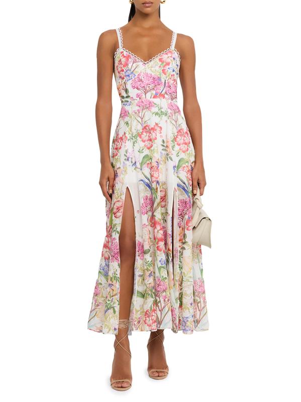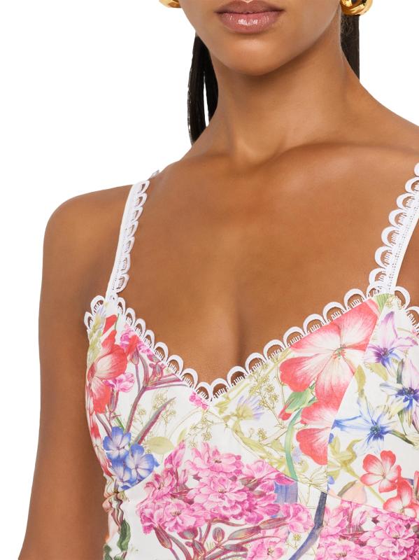 يتميز فستان إيراسو المتوسط هذا من Charo Ruiz Ibiza بتصميم على شكل حرف A مزين بنقشة زهور نابضة بالحياة. يتميز التصميم الأنيق بتفاصيل الدانتيل الرقيقة والشقوق الأمامية وأشرطة السباغيتي القابلة للتعديل.