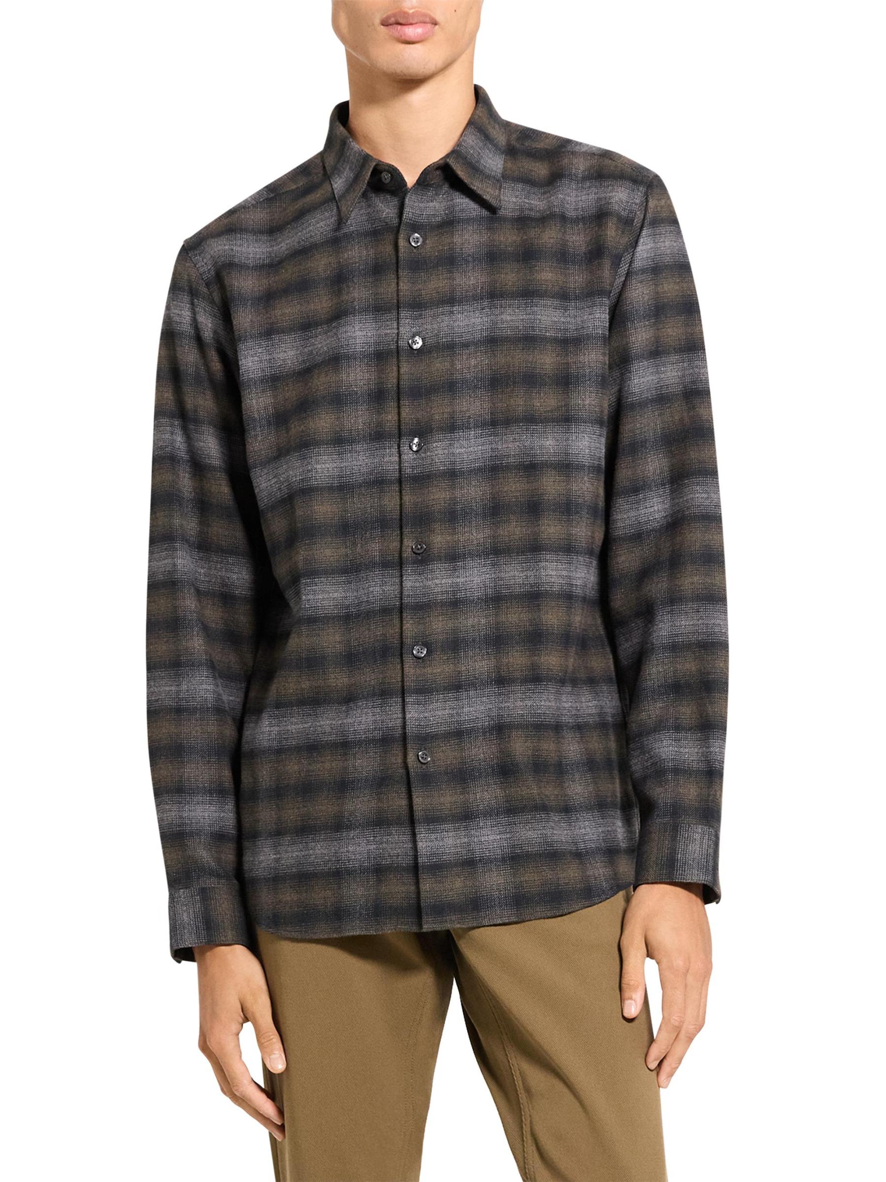 تغطي نقشة الظل قميص إيرفينغ من ثيوري، المصنوع من نسيج قطني ناعم من الفانيلا ومقص بمقاس كلاسيكي.ياقة مدببة أساور بأزرار بأكمام طويلة حافة على شكل ذيل القميص إغلاق بأزرار أمامية قطن بنسبة 100% تنظيف جاف مستوردة