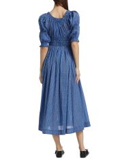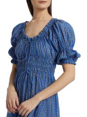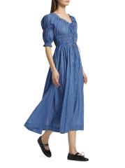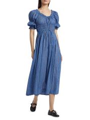 يبرز فستان Ischia midi من DÔEN القطن العضوي الهش بطبعة Cassie Check من العلامة التجارية. تتميّز هذه القطعة الساحرة، المُزيّنة عند الخصر والأساور، بأربطة أمامية أنيقة وأكمام مزدوجة منتفخة.