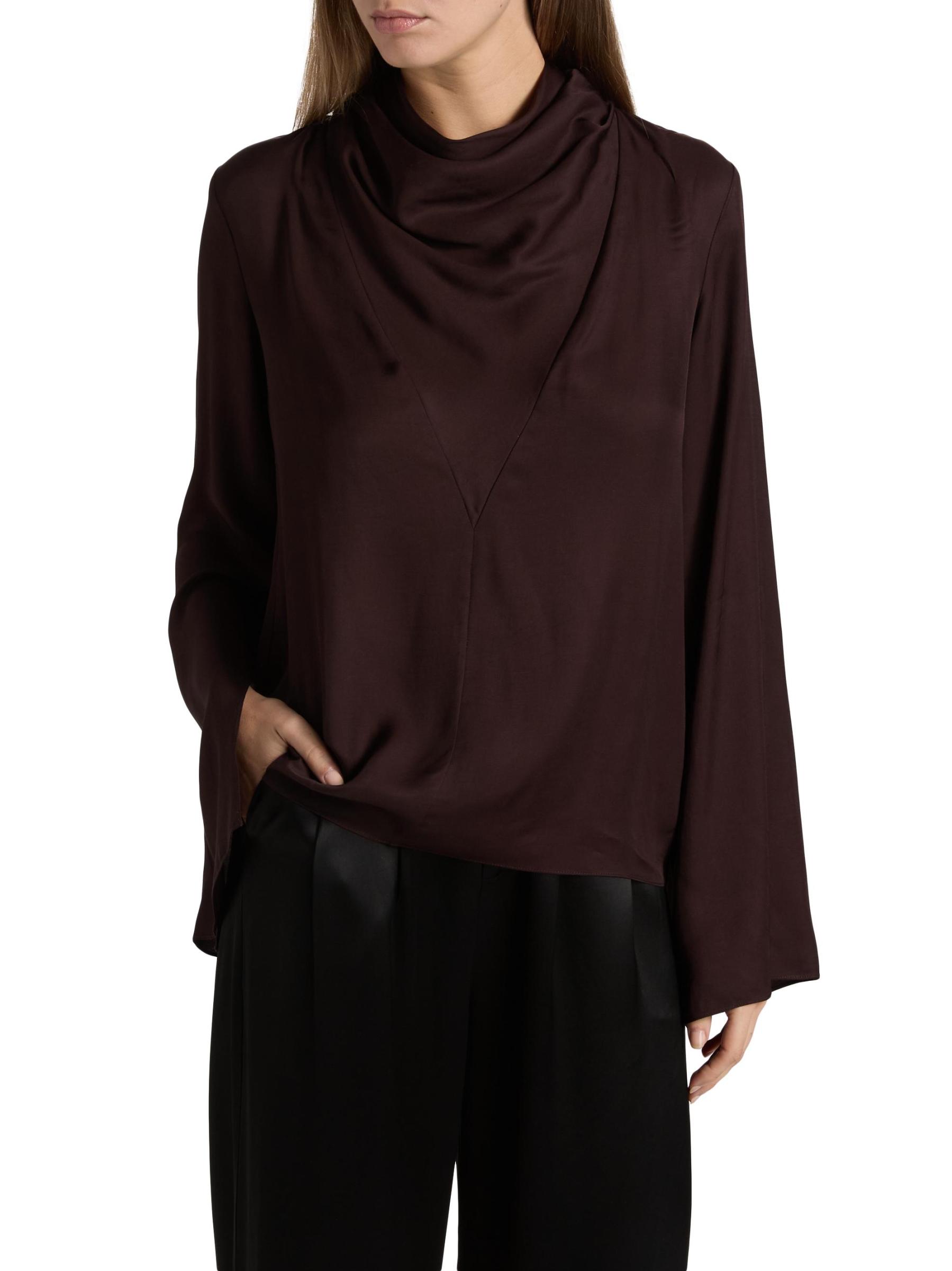 تتدرج بلوزة إيسلا الفاخرة من براندون ماكسويل من خط العنق على شكل قلنسوة إلى شكل فضفاض مُحاط بأكمام على شكل جرس لإضفاء لمسة أثيرية إضافية.