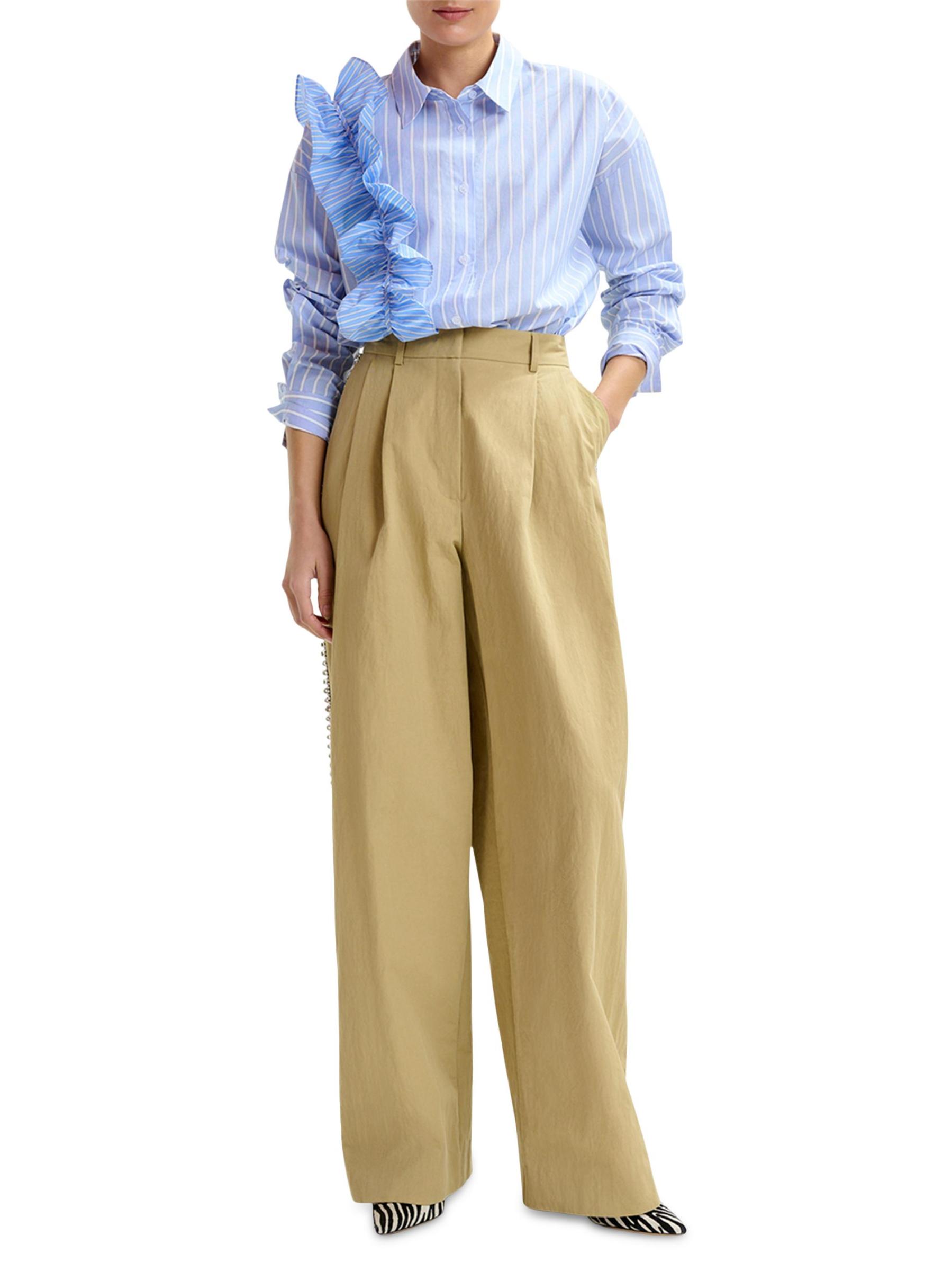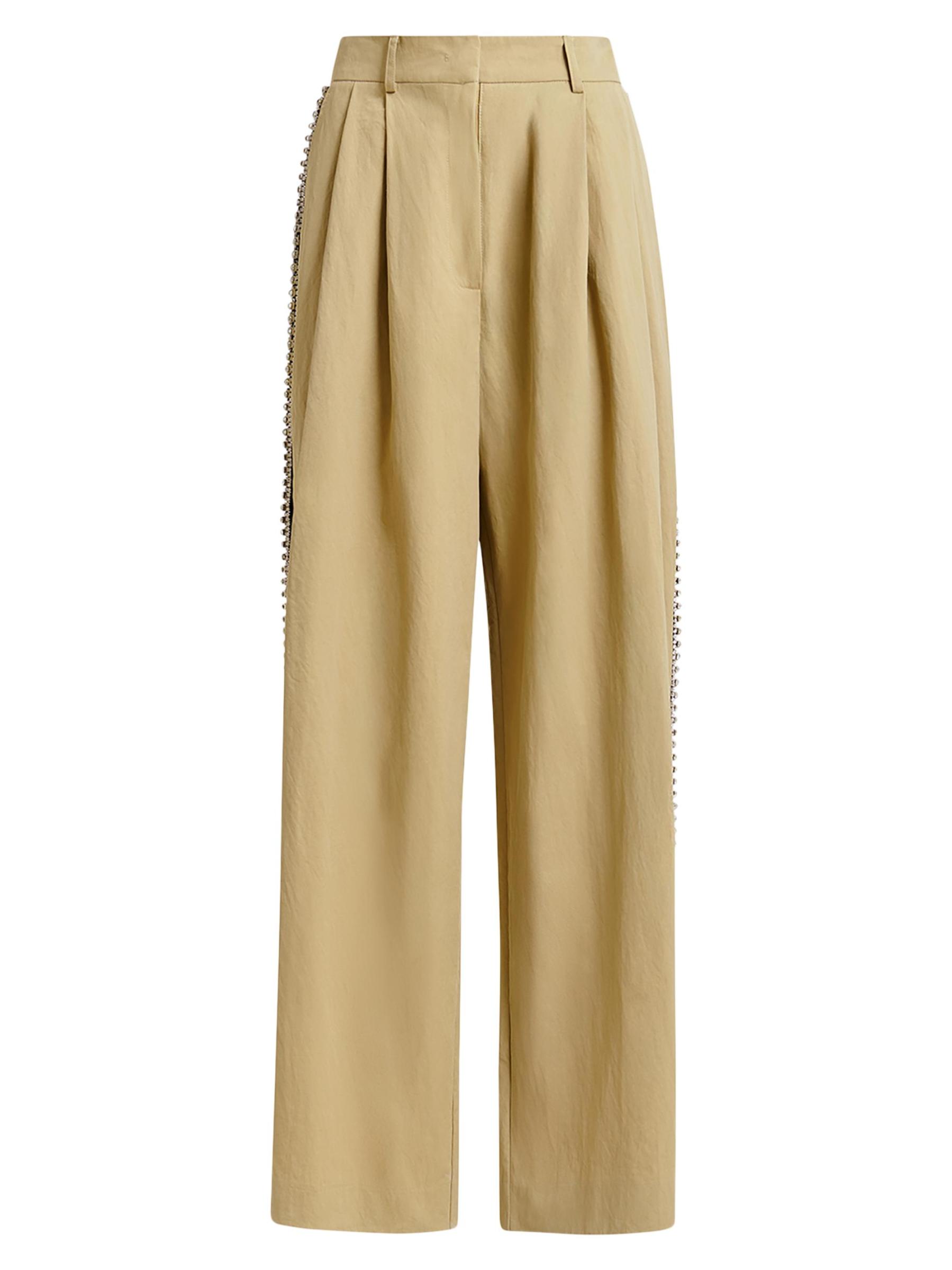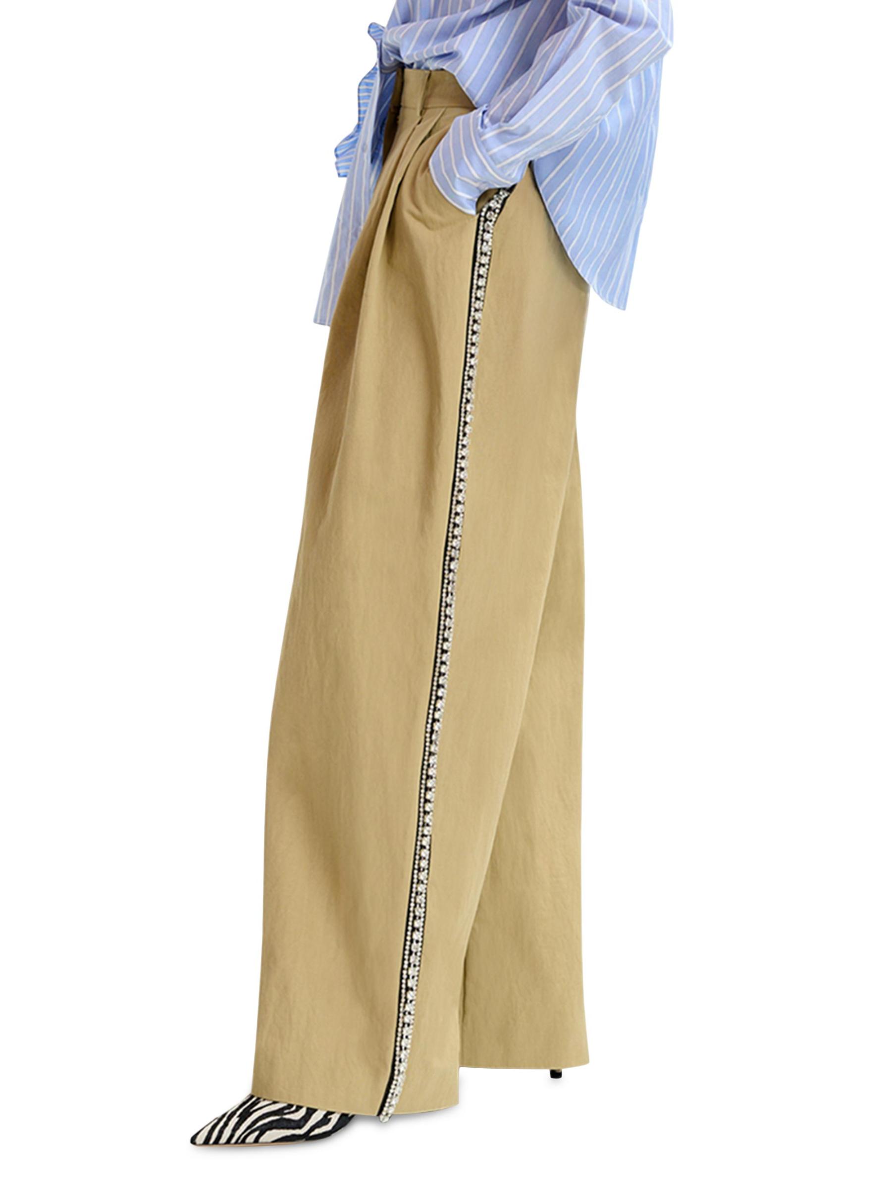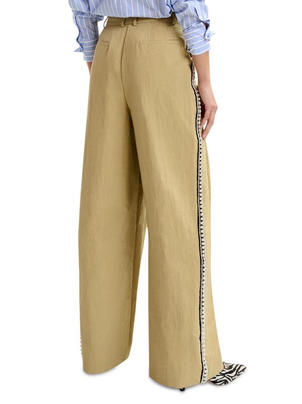 صُنعت سراويل Iso من Essentiel Antwerp من مزيج القطن متوسط الوزن وتم قصها بشكل ثنيات واسع الساق مع خطوط لامعة من حجر الراين على طول كل ساق.حلقات الحزام طيات أمامية مقلوبة جيوب جانبية على درزات جيبان خلفيان سحّاب مخفي، إغلاق بخطاف وقضيب نايلون/قطن البطانة: فيسكوز يُغسل في الغسالة صُنع في الولايات المتحدة الأمريكية