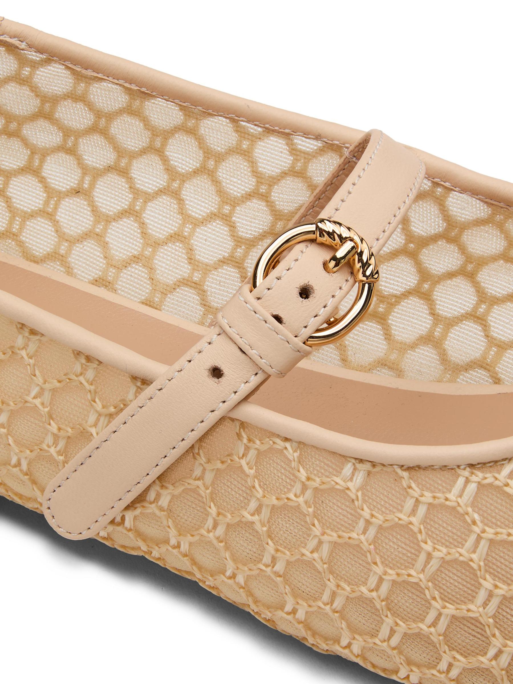 تتميز أحذية الباليه المسطحة Isobel من Ulla Johnson بشبكة مستوحاة من السلسلة مزينة بزخرفة جلد نابا الفاخر. تم تصميم هذا الزوج بمقدمة مستديرة وحزام قابل للتعديل على طراز ماري جين، ويتميز بنعل جلدي لمزيد من الأناقة.