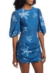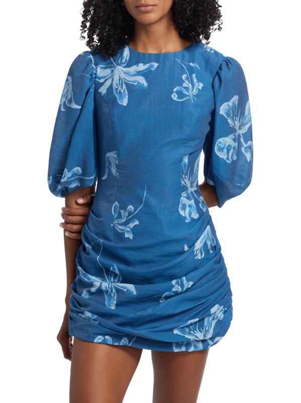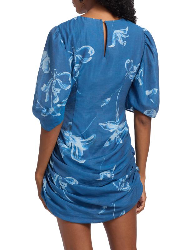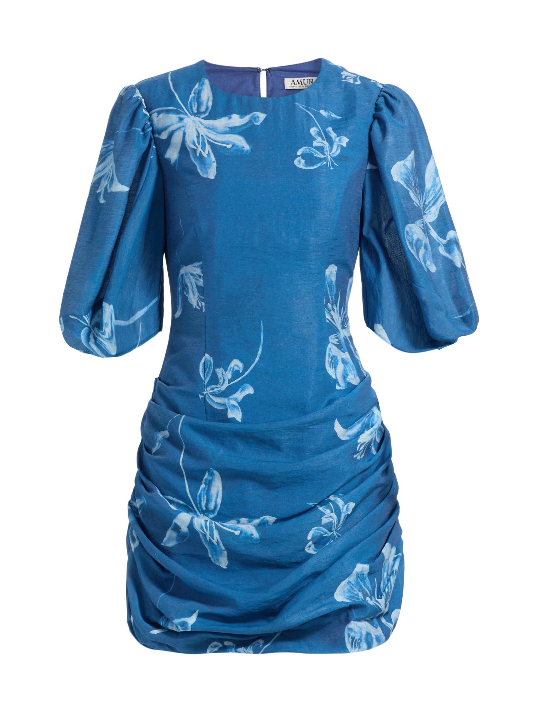 تم تصميم فستان Isola القصير من الدنيم من Amur مع تنورة مجمعة وطبعة زهرية. تتميّز هذه القطعة، المؤطرة بأكمام منفوخة، بتقويرة مستديرة وفتحة مفتاح في الخلف.