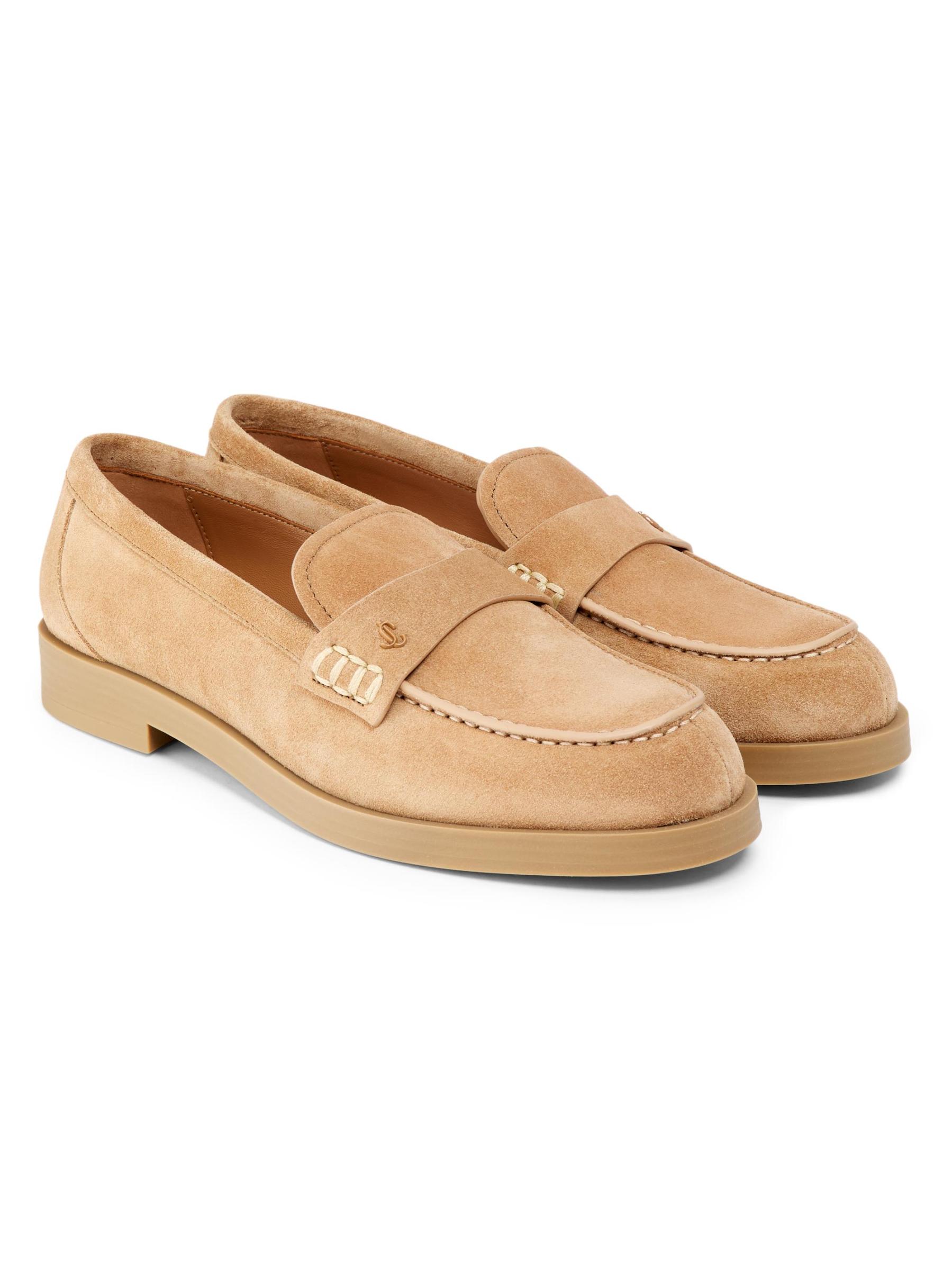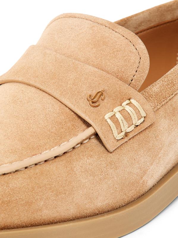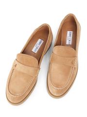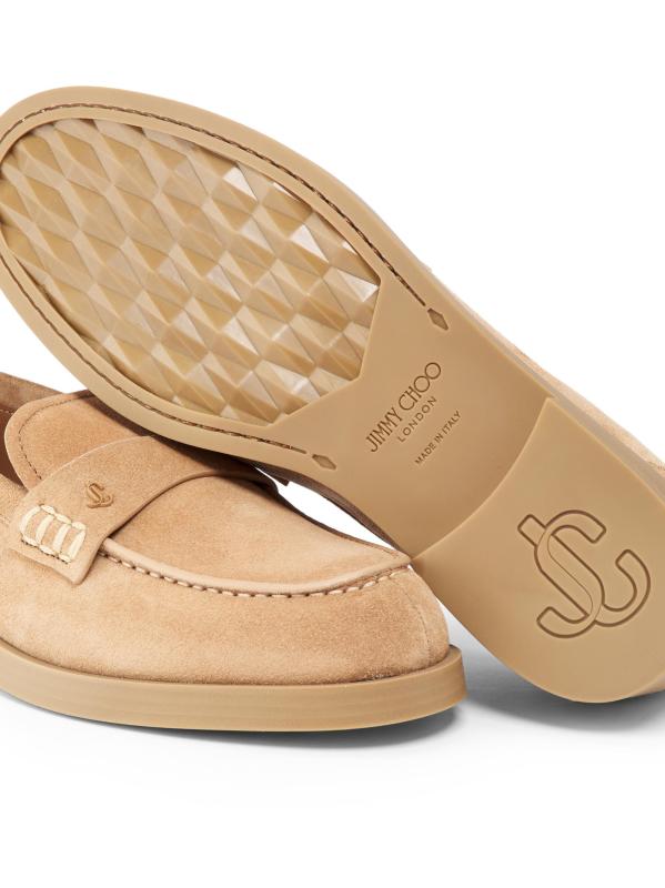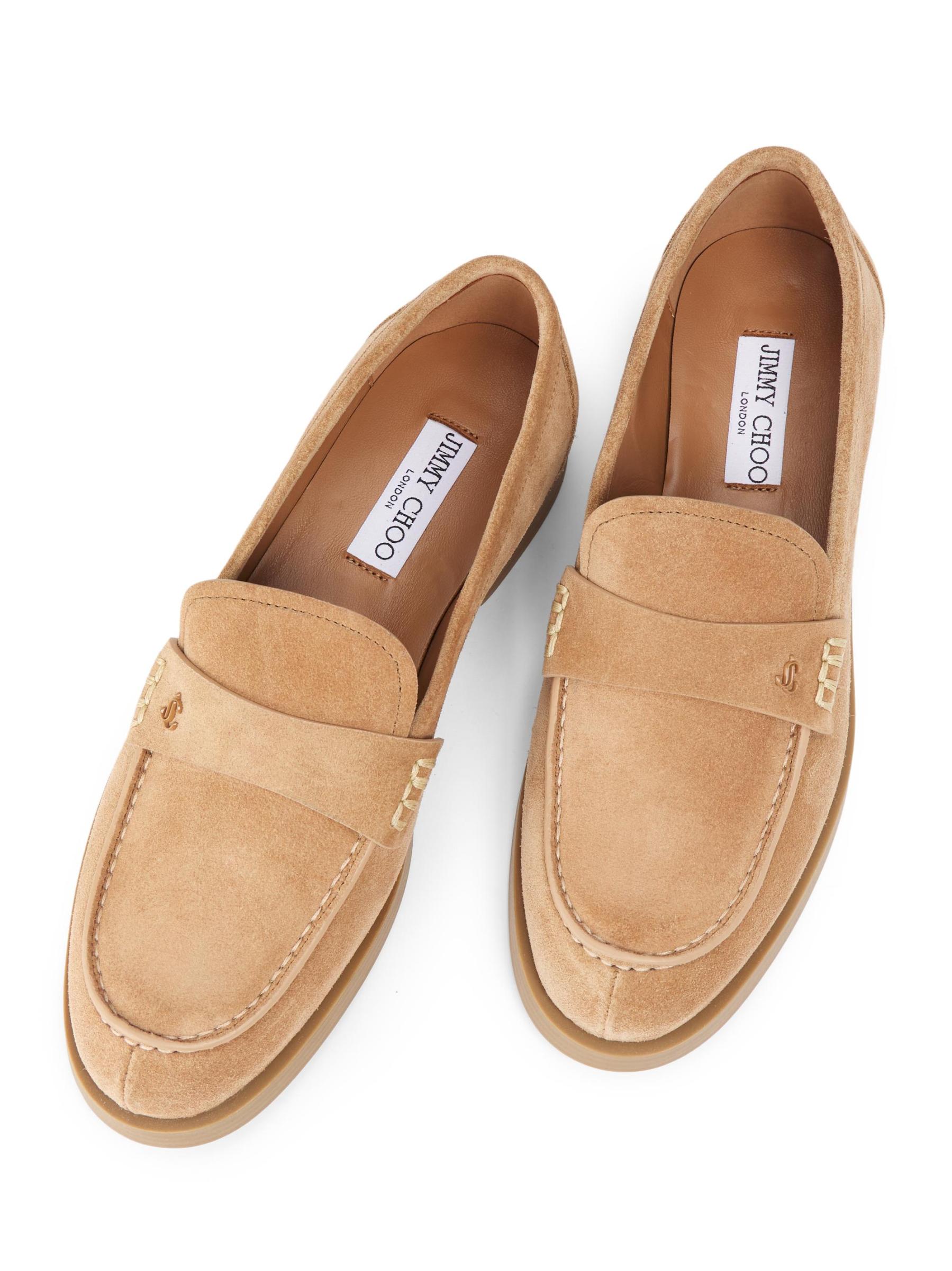 تتميّز أحذية آيفي لوفر الأيقونية من جيمي تشو، المصنوعة في إيطاليا، بجزء علوي مخملي من الجلد المدبوغ، وحزام مطاطي مزيّن بشعار الماركة، ونعل مطاطي قوي.