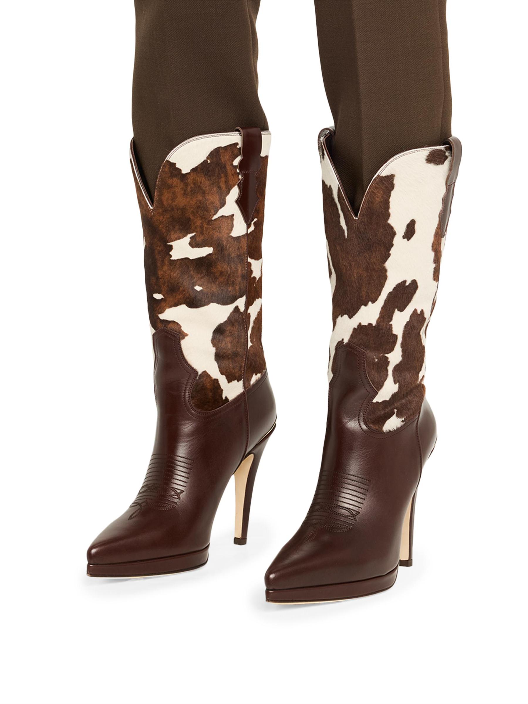 تتميز أحذية إيزي كاوبوي هذه من بارتلو، المصنوعة من الجلد، بلمسة نهائية من شعر الساق المصبوغ والمرقط ومقدمة مدببة وكعب خنجر مقاس 110 مم.