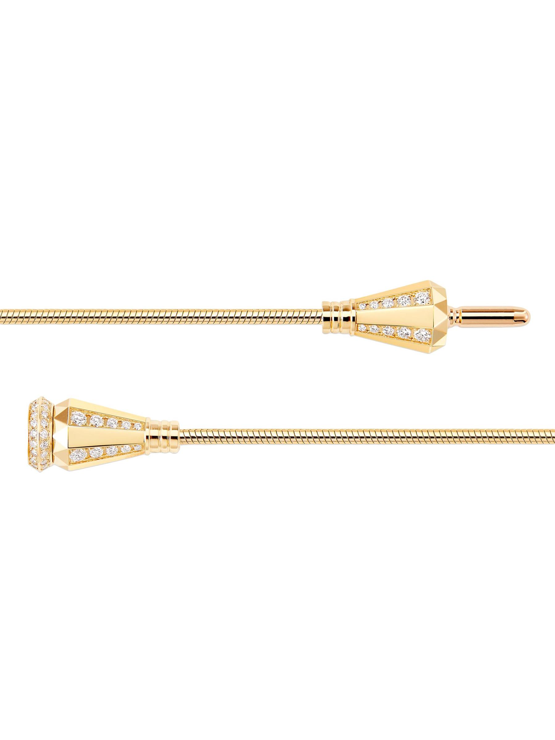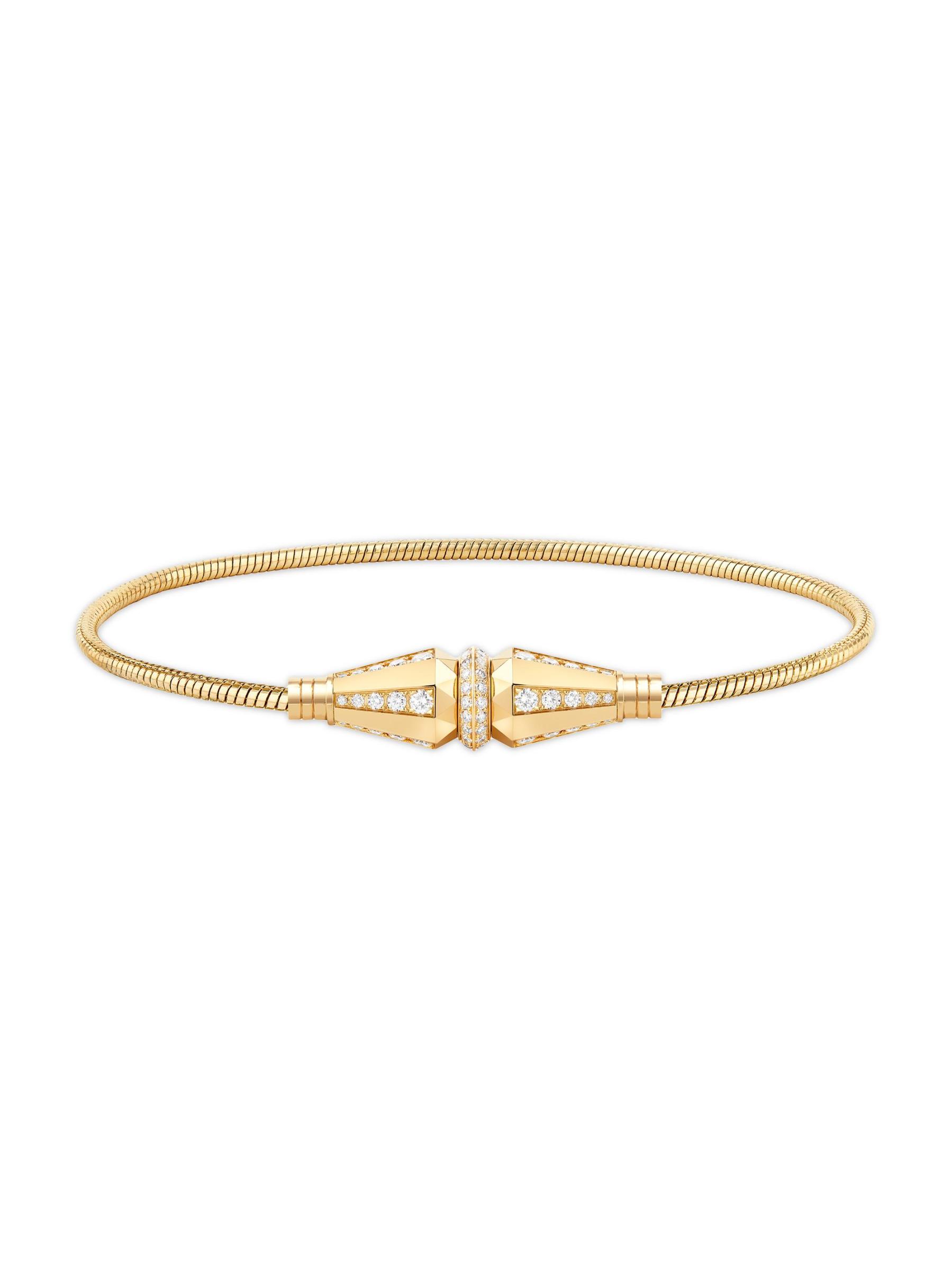 من مجموعة جاك دي بوشيرون. سوار Boucheron المستوحى من الكابلات مصنوع من الذهب الأصفر عيار 18 قيراطًا والمرصّع بالألماس اللامع.