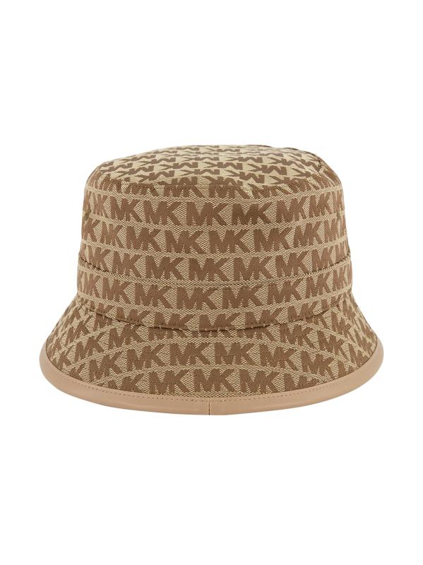 تتميّز قبعة مايكل كورس المصنوعة بالكامل من الجاكار بتصميم مونوغرام بتاج مسطح وشعار معدني ذهبي اللون وحافة مقلوبة.