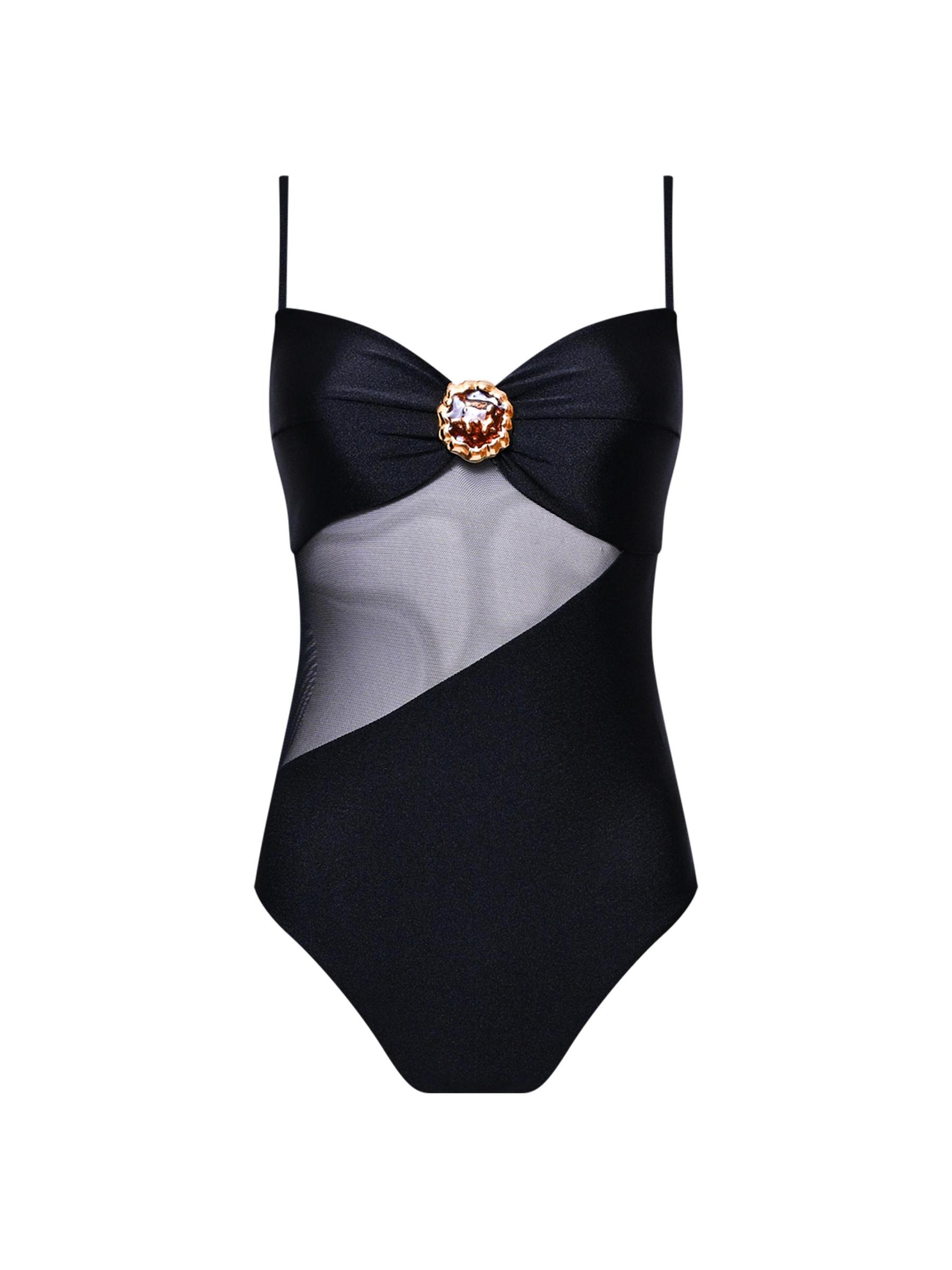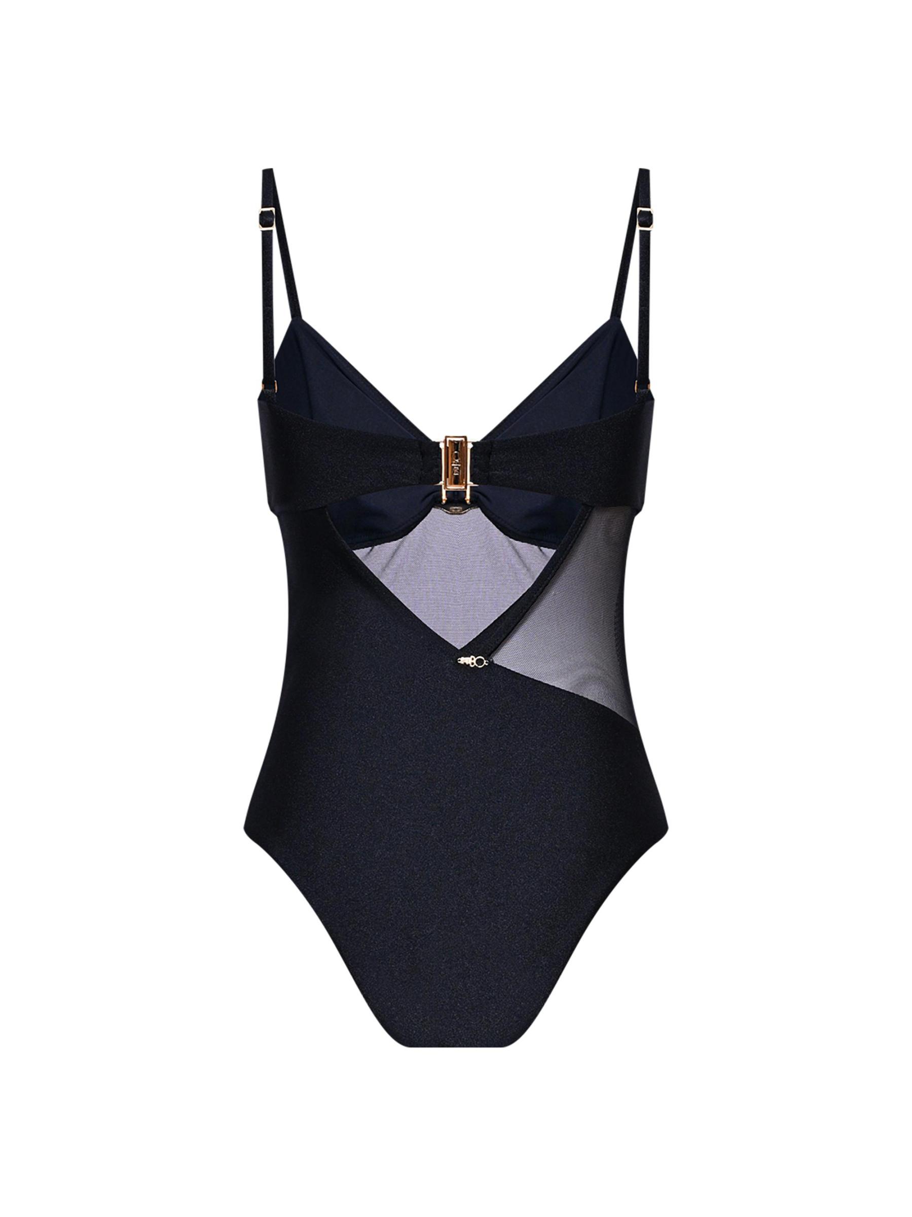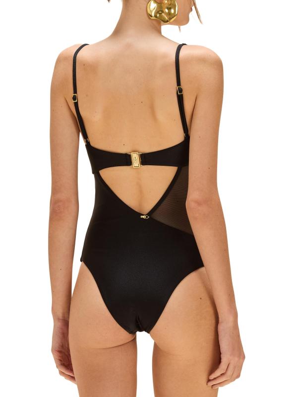 تُظهر ملابس السباحة Jade المكونة من قطعة واحدة من PatBo تفاصيل منحوتة على خط العنق على شكل قلب مُجمَّع ولوحة شفافة.