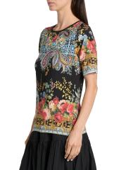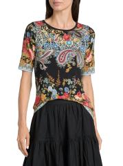 يتميز تي شيرت Janie Favourite من Johnny Was برقبة دائرية كلاسيكية وأكمام قصيرة وطبعة زهرية زاهية.