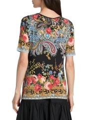 يتميز تي شيرت Janie Favourite من Johnny Was برقبة دائرية كلاسيكية وأكمام قصيرة وطبعة زهرية زاهية.رقبة مستديرة أكمام قصيرة تسحب 95% بامبو رايون/ 5% سباندكس يُغسل في الغسالة مستوردة